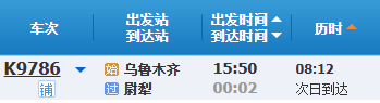 乌鲁木齐至尉犁列车时刻。