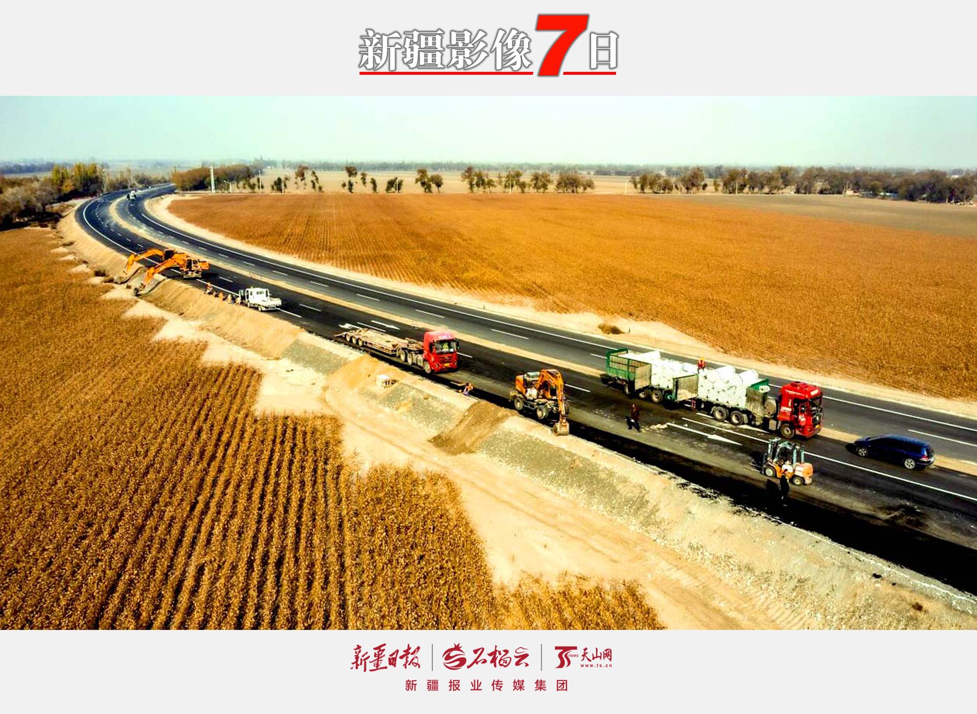 沥青摊铺机驶过最后一段路基,黑色长龙即将贯通。霜降这天,乌鲁木齐的公园成了打翻的调色盘。当苹果的清香混着风电的电流,当棉花的柔软裹着公路的坚硬,新疆正用最斑斓的方式,书写着秋天的终章。