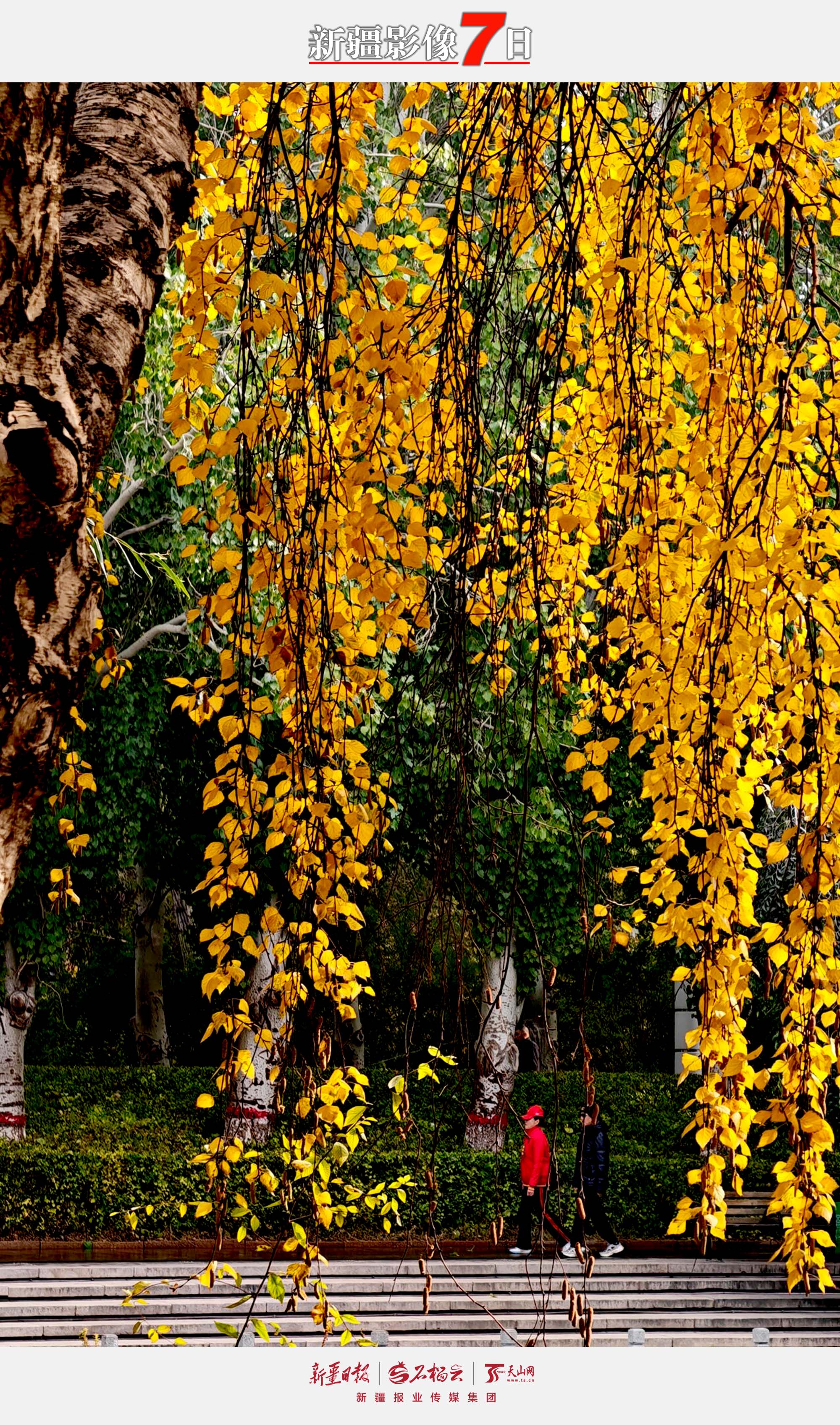 10月20日,市民在乌鲁木齐文化公园散步。初雪的凉意还未完全消散,秋叶未落便承住了第一片雪的重量。晴暖天气接踵而至,给整座城市换上了鎏金的盛装。天山网-新疆日报记者 约提克尔·尼加提摄