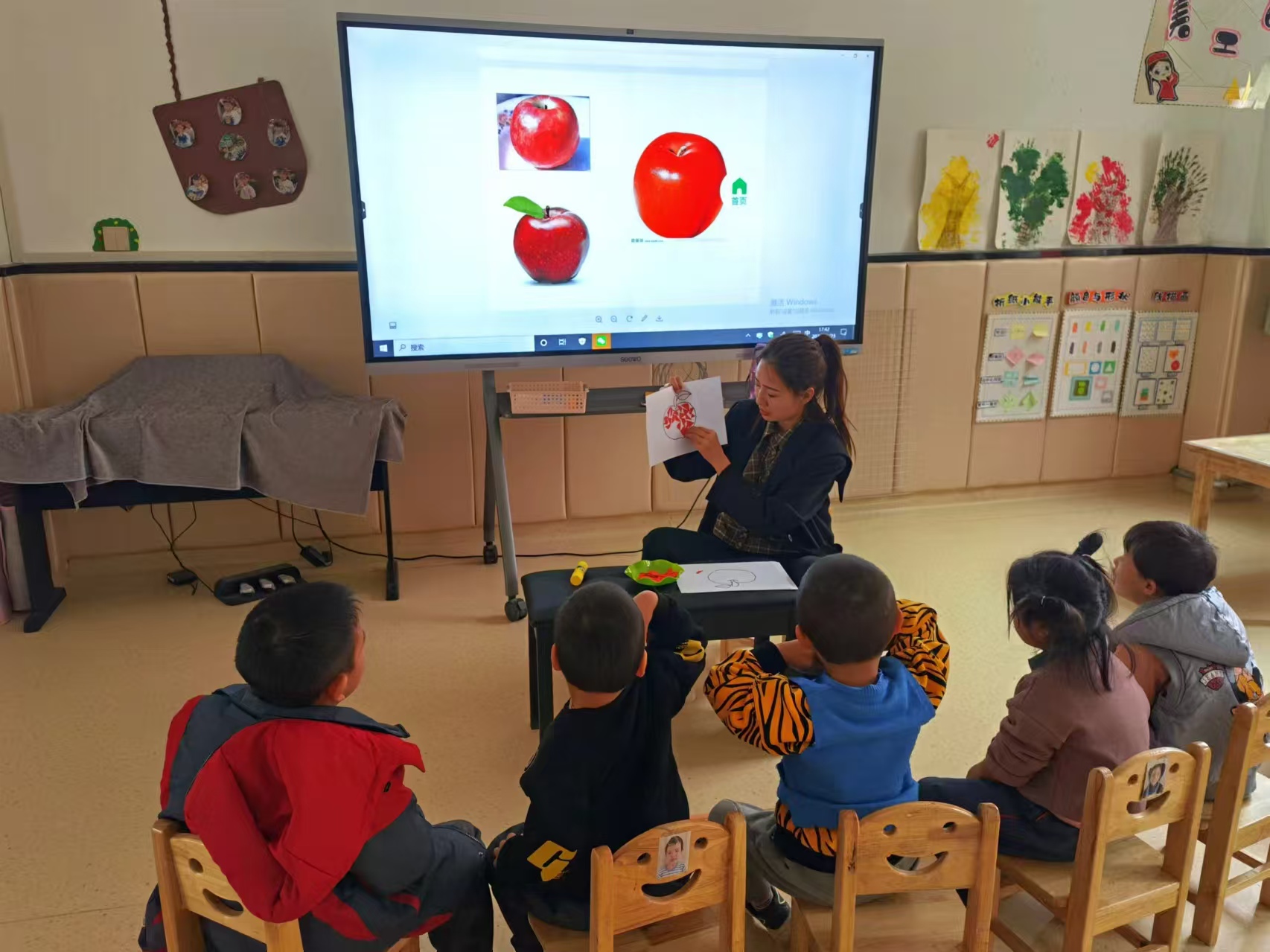 10月21日,在阿克苏地区启明学校,老师正引导幼儿认识颜色。李静 摄