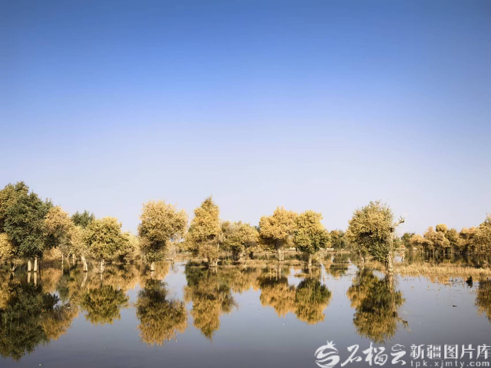 金秋喀什,千株胡杨蘸金,风过叶摇,碎金倒影在涟漪里叠漾。刘涛摄