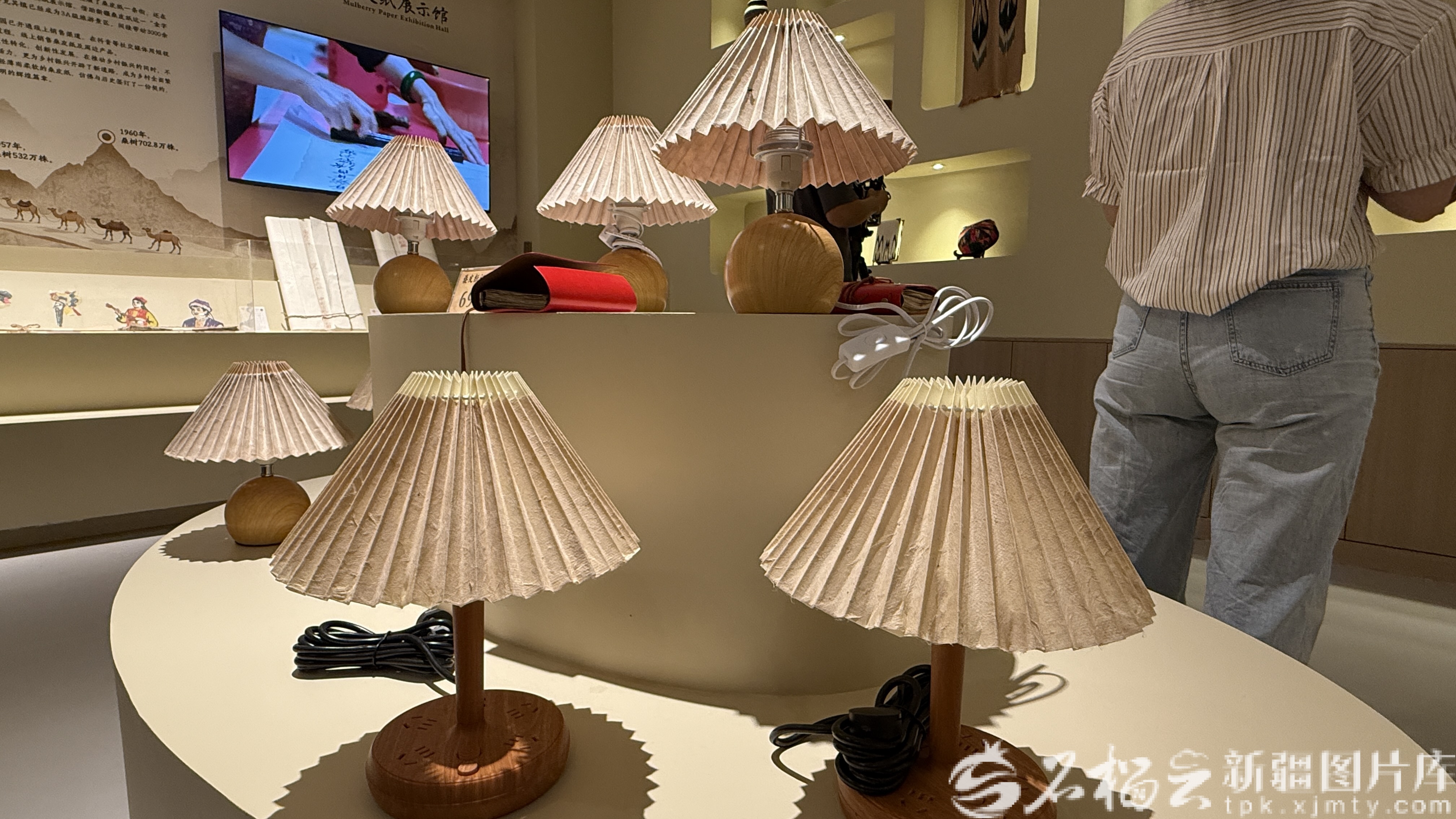 墨玉县普恰克其镇布达村桑皮纸展示馆内陈列的桑皮纸台灯。天山网-新疆日报记者 拍热扎提·阿不都摄