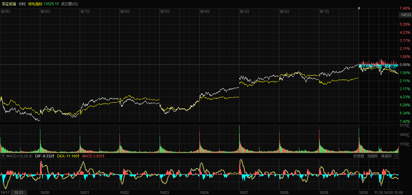 深证成指近十日变化趋势(来源:东方财富)。