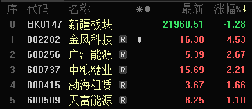 10月30日新疆板块股价涨幅排名(来源:东方财富)。