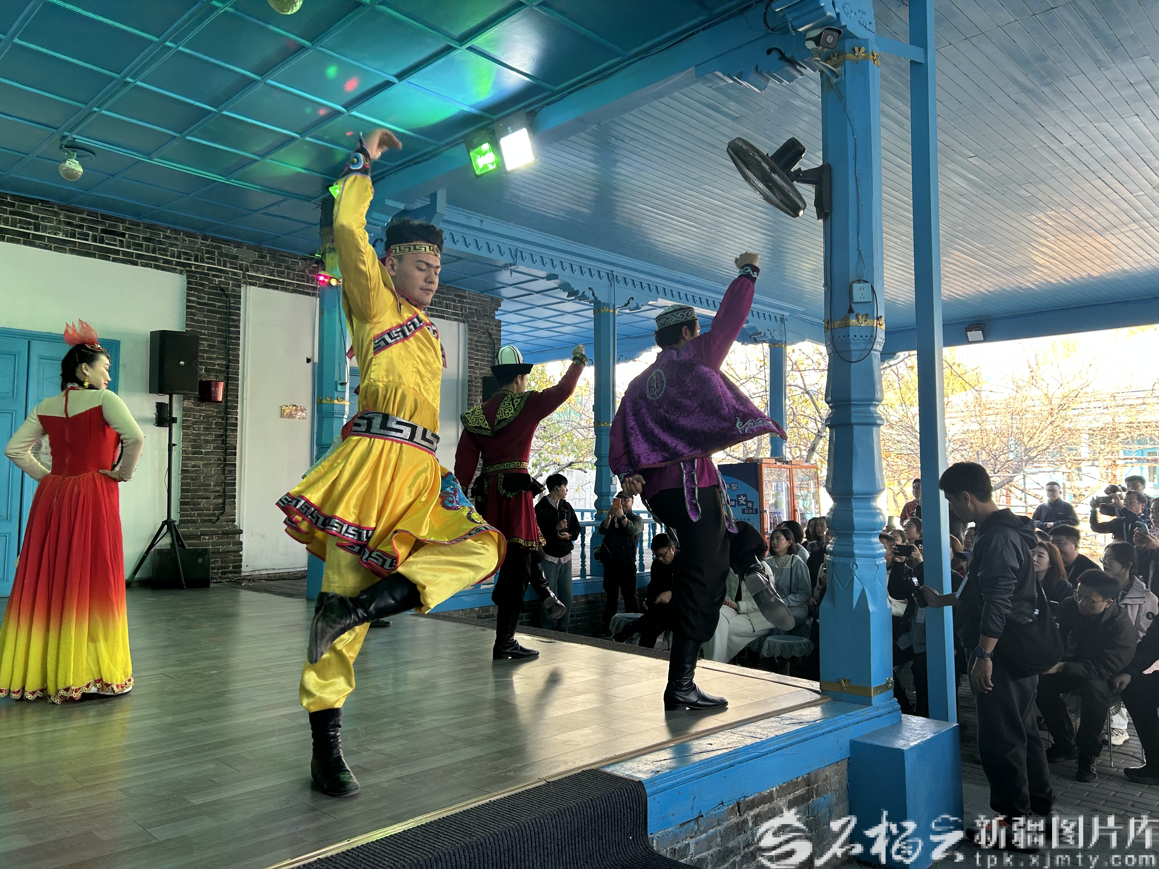 10月31日,游客在伊犁老城文化旅游区锡伯车马店观看歌舞表演。天山网-新疆日报记者 宋卫国摄