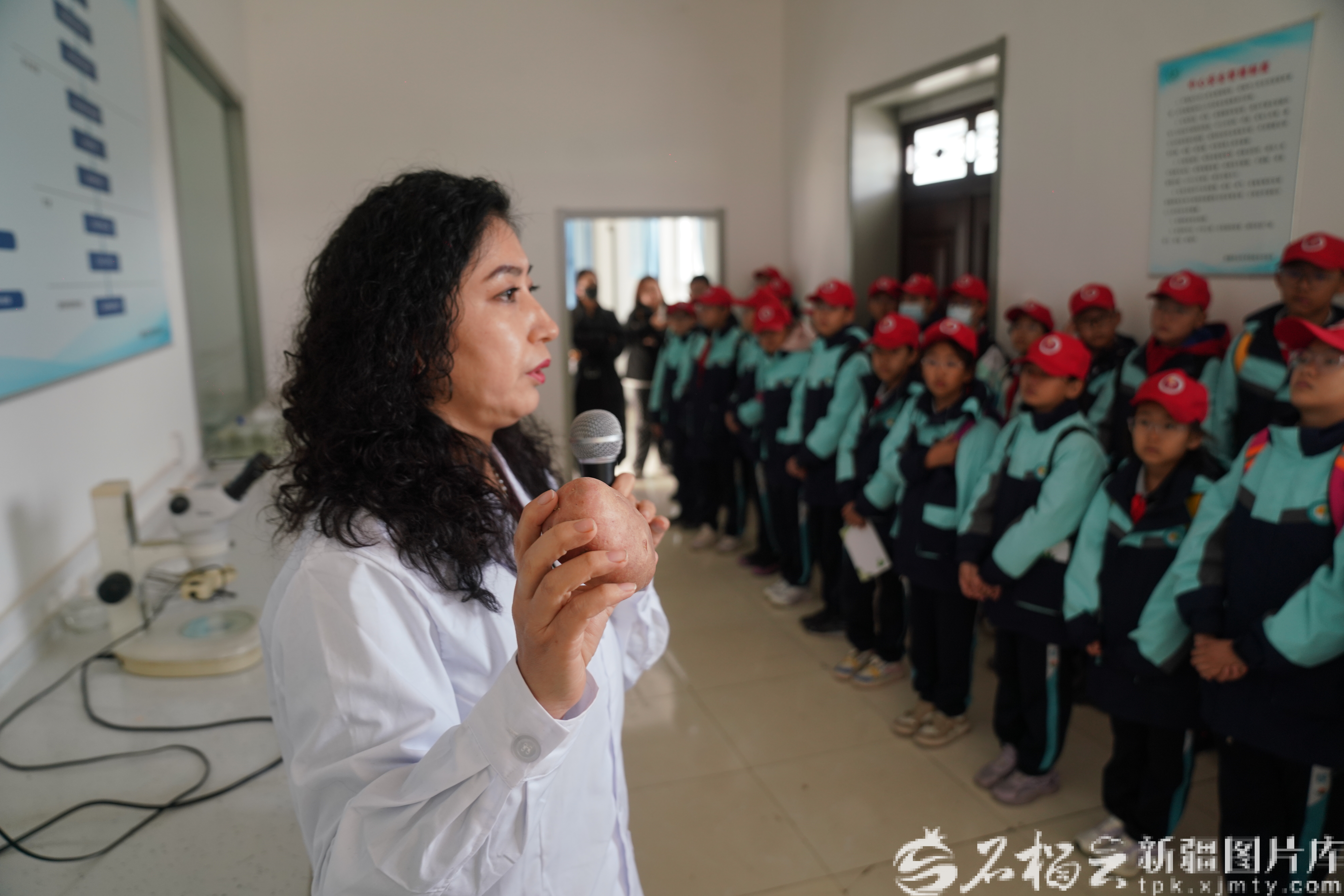 10月21日,新疆作物资源利用及脱毒技术研究中心高级农艺师古丽米拉·热合木吐拉给学生们讲解马铃薯通过脱毒技术实现增产的原理。