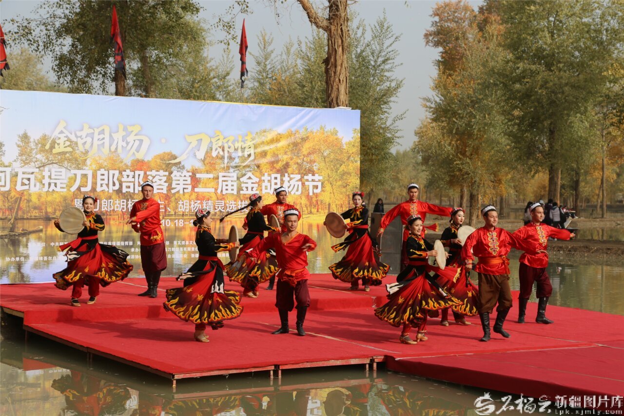 10月18日,演员们在阿瓦提县刀郎部落胡杨林下跳着欢快的刀郎麦西热甫。包良廷摄
