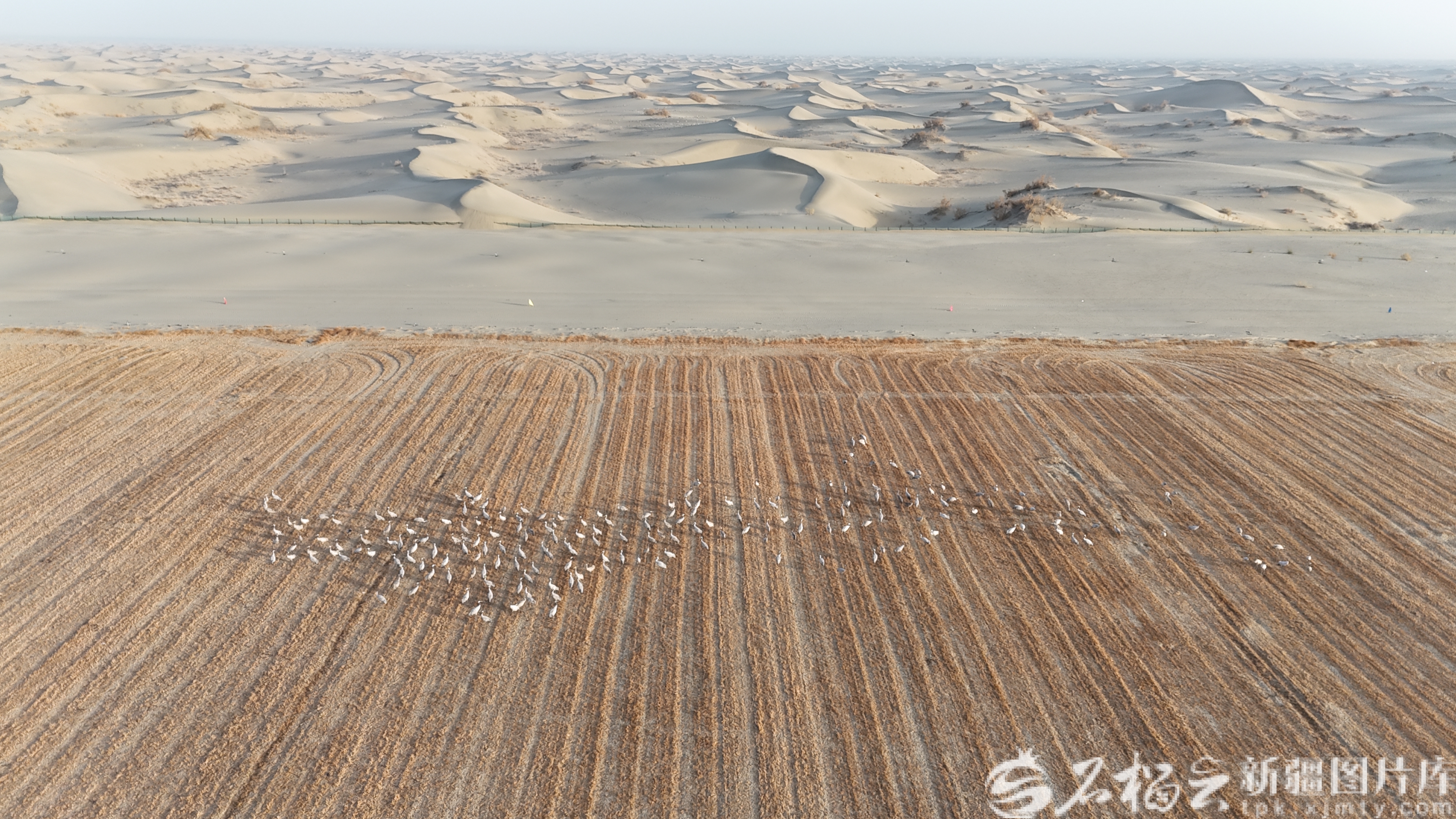 天山网-新疆日报讯(记者赵梅 通讯员陈文杰报道)11月1日,在位于塔克拉玛干沙漠南缘的和田市吉亚乡团结新村附近的油莎豆田里,成群的灰鹤正在引颈长鸣,悠然觅食。它们优雅的身姿与远处的沙丘交相辉映,构成大漠中一道灵动而独特的风景。