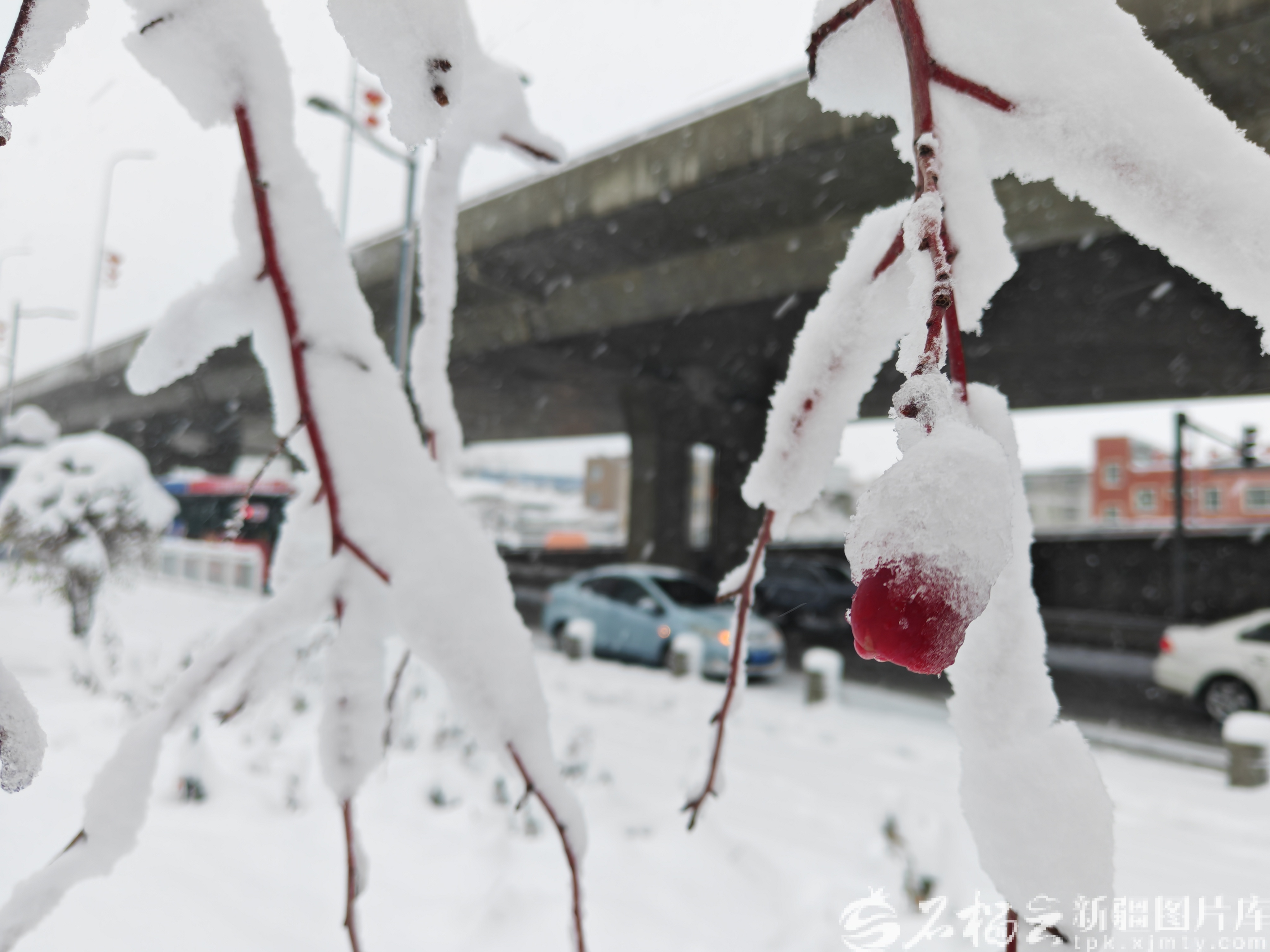 11月6日,乌鲁木齐市观园路,鲜红的果实依然挂在树枝上。 石榴云/新疆日报记者 秦梅花摄