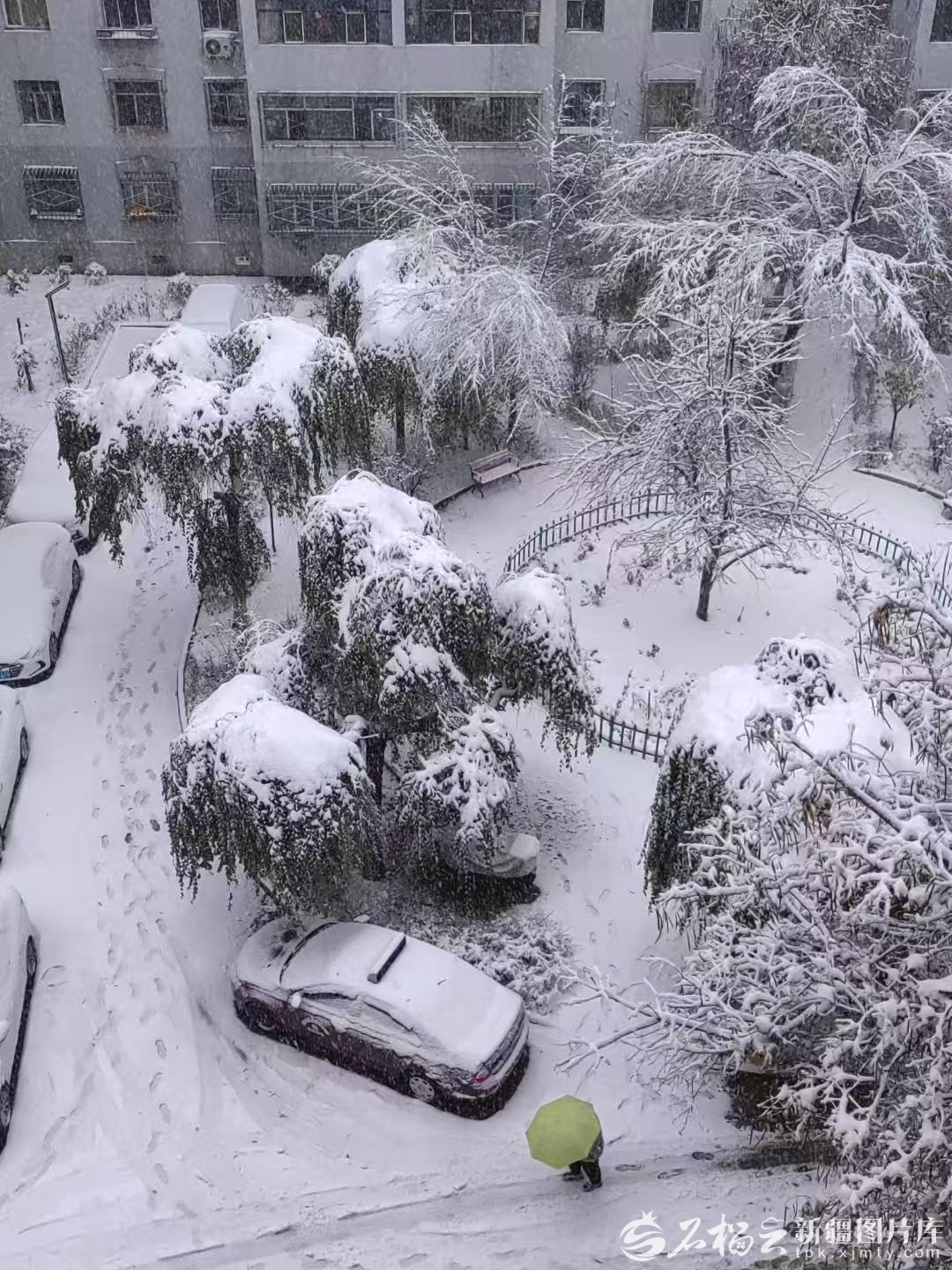 11月6日早,乌鲁木齐市观园路一小区,居民在雪中行走。 石榴云/新疆日报记者 秦梅花摄