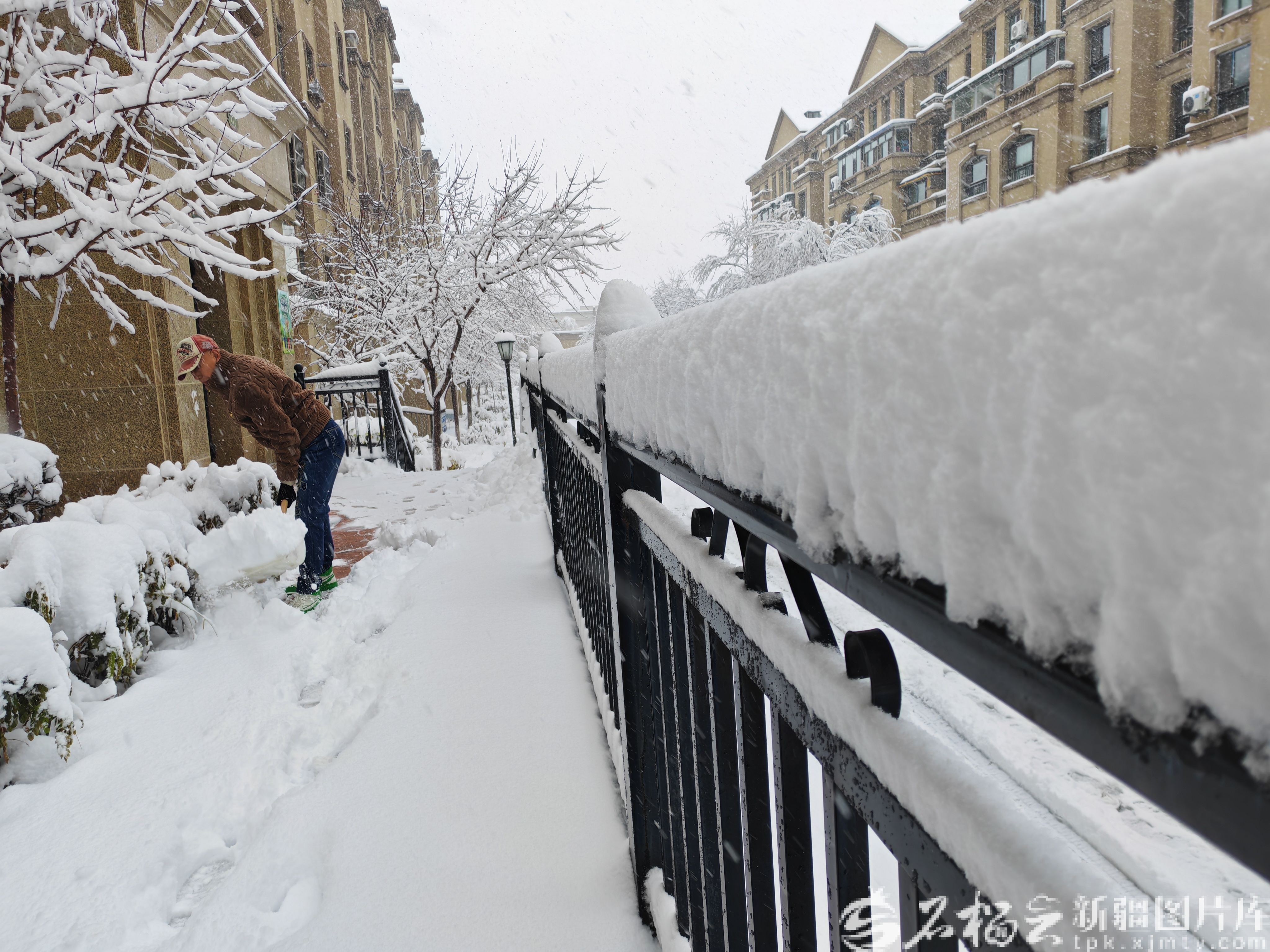 11月6日,乌鲁木齐市观园路一小区,居民在清理积雪。 石榴云/新疆日报记者 秦梅花摄