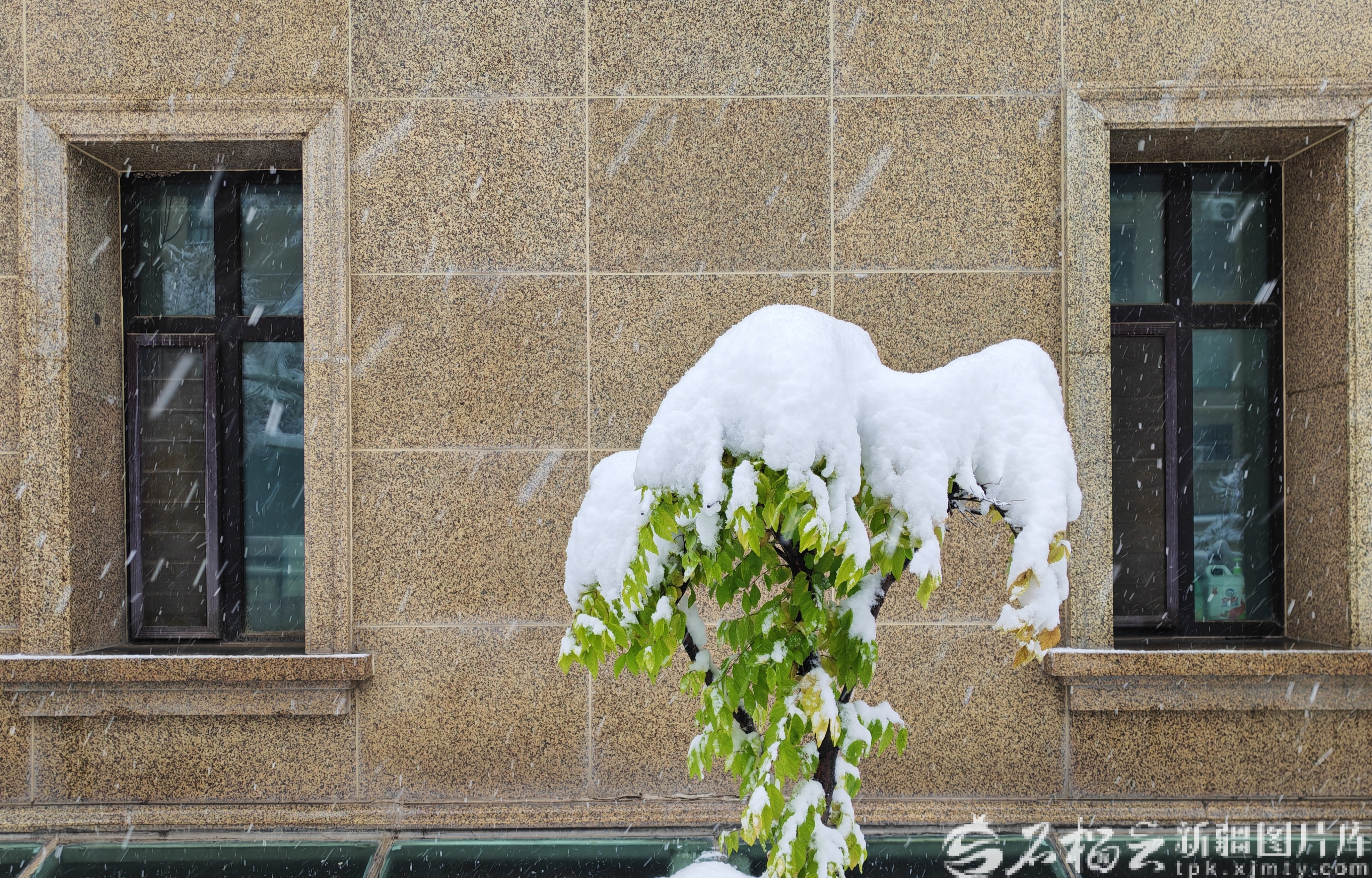 11月6日,乌鲁木齐市观园路一小区,绿植再雪中挺立。 石榴云/新疆日报记者 秦梅花摄