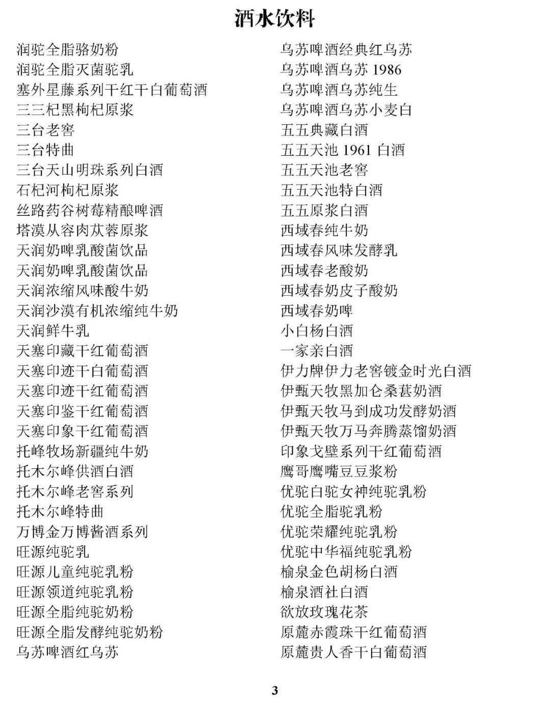 “新疆优品”入选名单如下(按首字母排序,排名不分先后):