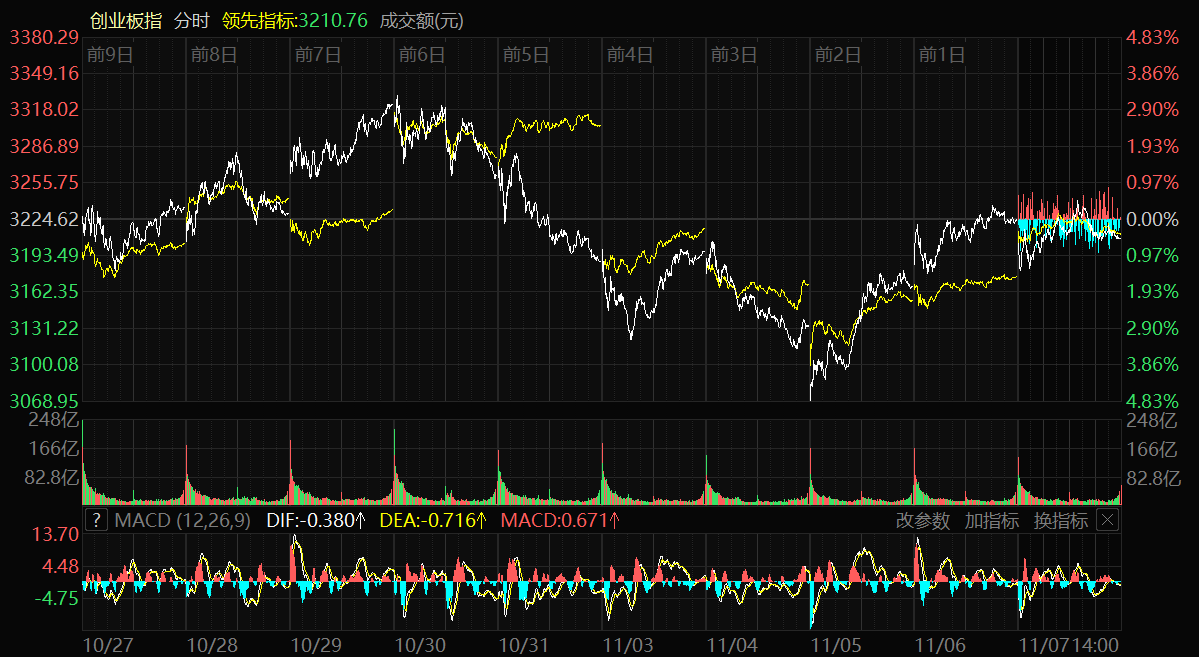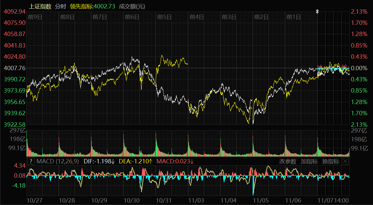 天山网-新疆日报讯(记者冉虎报道)11月7日,A股三大指数集体小幅回调。截至收盘,上证指数跌0.25%,报收3997.56点;深证成指跌0.36%,报收13404.06点;创业板指跌0.51%,报收3208.21点。沪深两市成交额19991亿元,较昨日缩量562亿元。