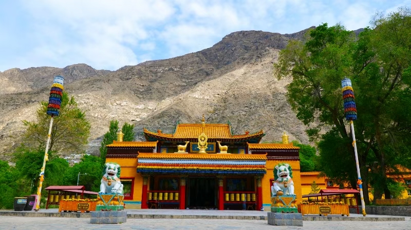 沿着乌尉高速前行,首站抵达和静县巴仑台黄庙。这座始建于1856年的蒙藏传佛教圣地,又名“永安寺”,占地面积1.5万平方公里,建筑面积2.5万平方米,鼎盛时期僧人达3000余人,被誉为“小布达拉宫”。作为国家级重点文物保护单位和4A级景区,它不仅是新疆规模最大、最具影响力的宗教圣地,更肩负着传承东归精神、推动藏传佛教中国化的重要使命。2024年开馆的巴仑台历史文化展示馆,为这片土地的悠久历史增添了靓丽注脚,让你在感受文化历史的同时,读懂各民族交融共生的过往。