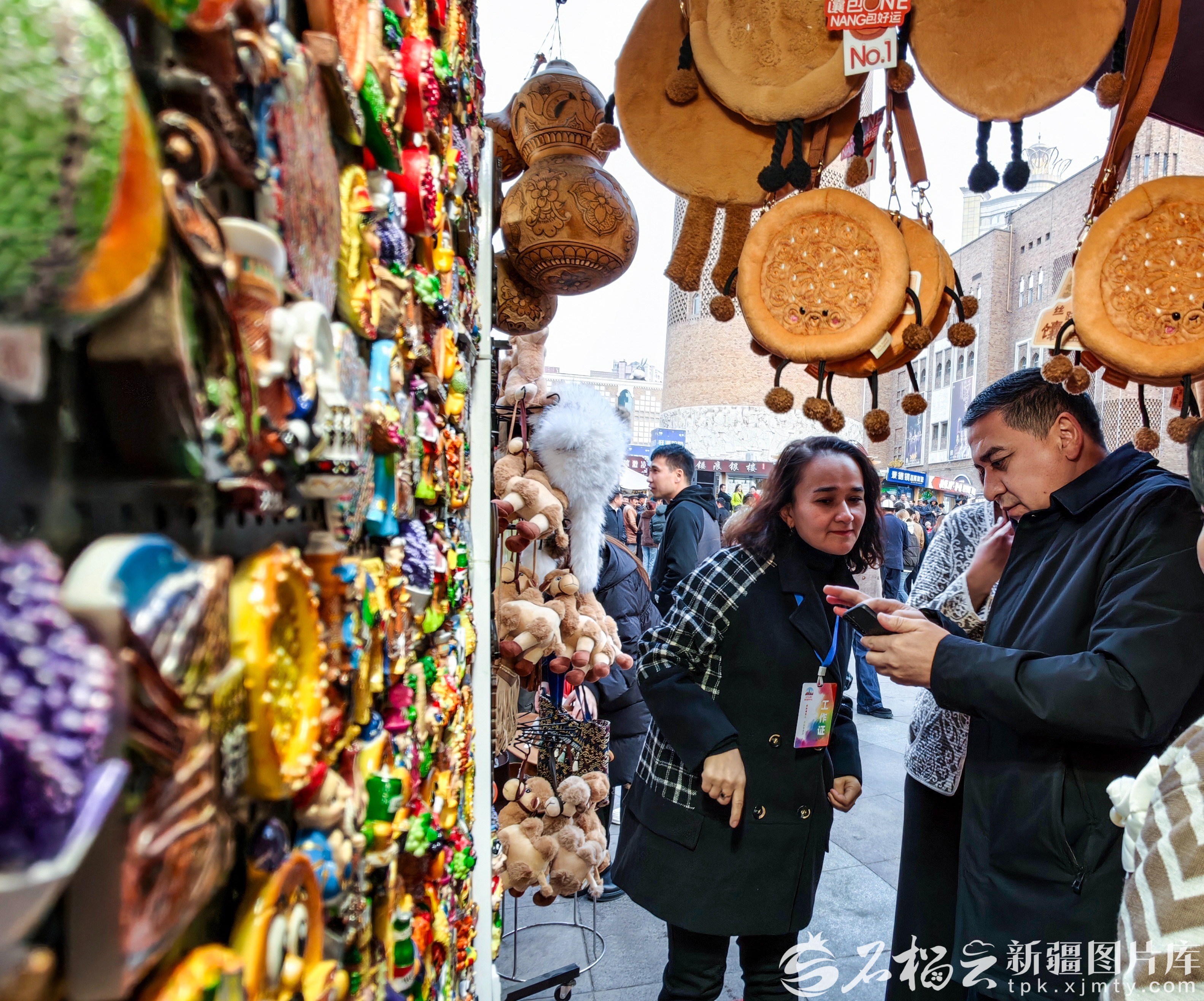 11月4日,参加“第十二届中国—中亚合作论坛”的乌兹别克斯坦代表团嘉宾在国际大巴扎景区参观。天山网-新疆日报记者 周鹏摄