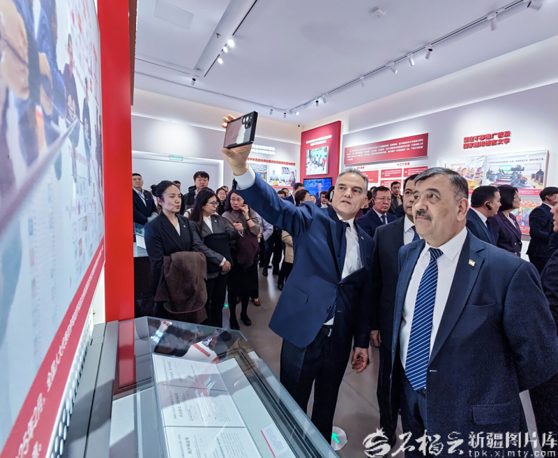 11月5日,参加“第十二届中国—中亚合作论坛”的多国代表团嘉宾参观新疆维吾尔自治区成立70周年主题成就展。天山网-新疆日报记者 周鹏摄