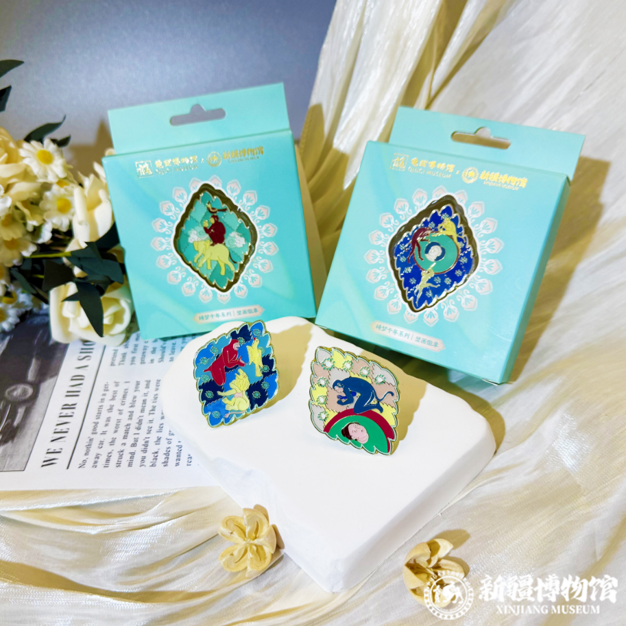 这枚徽章并非简单的图案复刻,而是古今工艺与文化的“时空对话”。通过现代压铸、上色工艺,原本静静陈列于石窟中的壁画形象被赋予新生;而“以轻物载厚意”的设计思路,更让厚重的龟兹文脉以亲切的姿态贴近大众。一枚徽章成为随身的文化窗口,让使用者在日常中与千年艺术隔空相契。