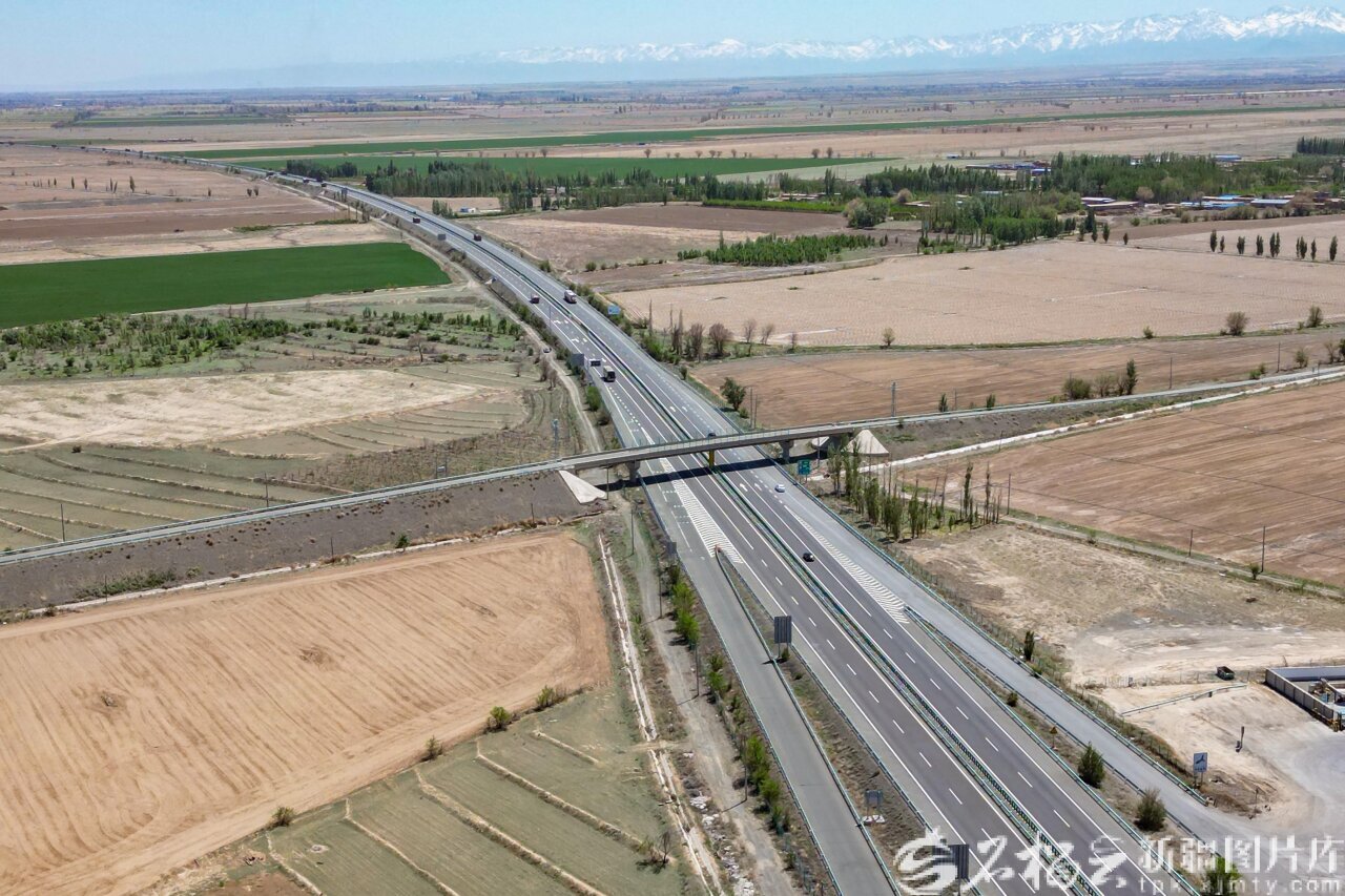 5月9日,G7京新高速公路两旁沃野千里。天山网-新疆日报记者 蔡增乐摄