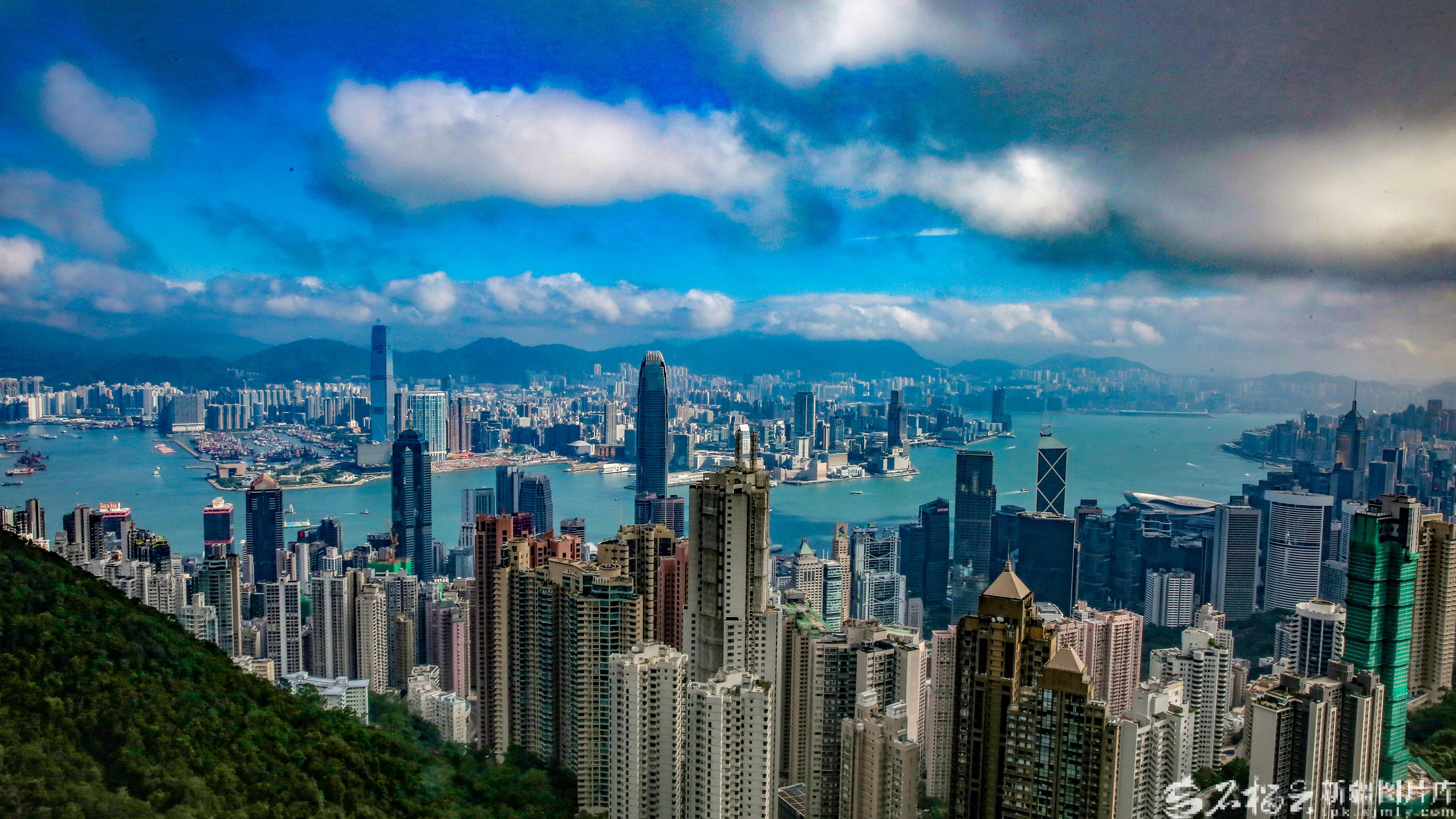 在太平山顶观景平台拍摄的香港城市景观。