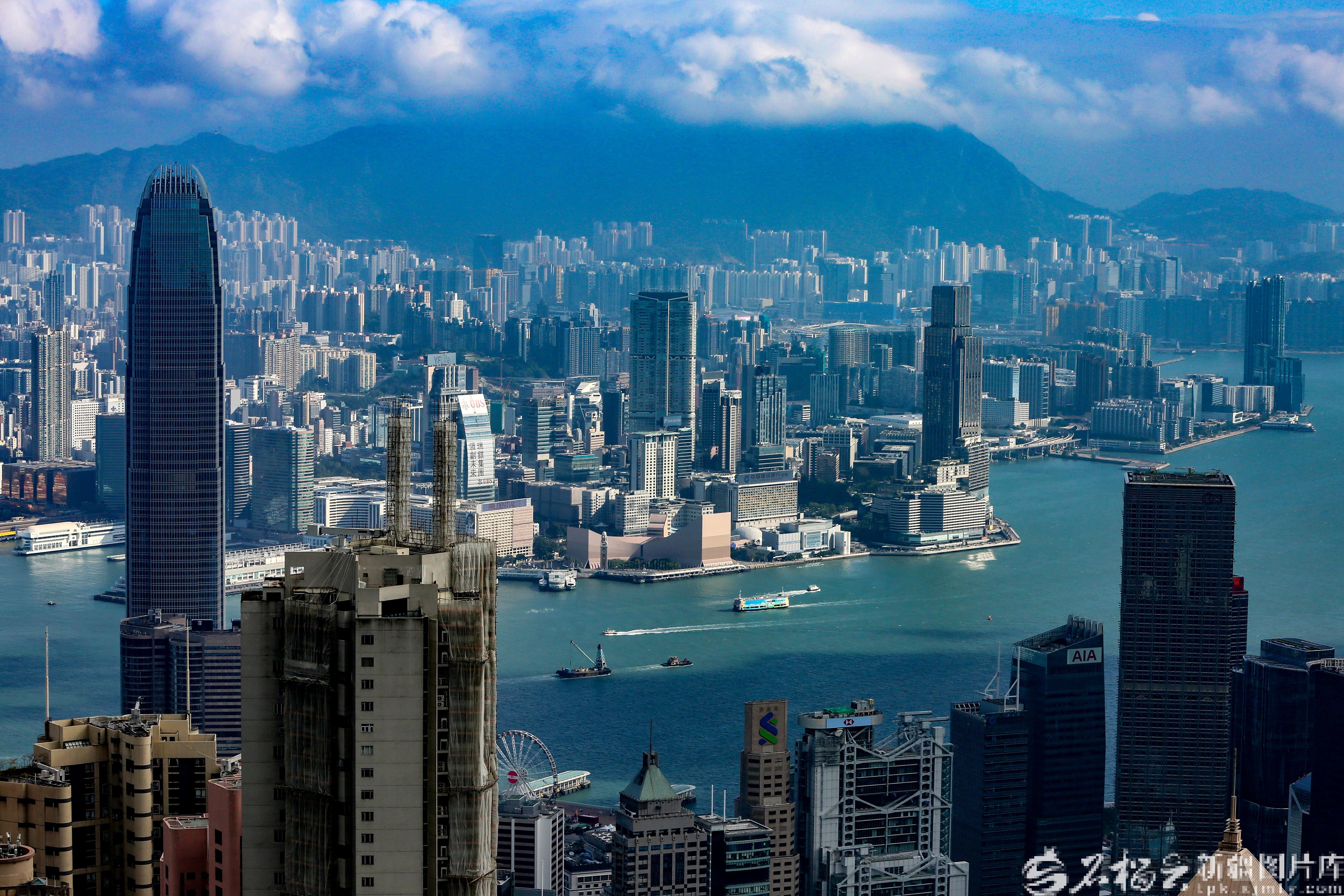 在太平山顶观景平台拍摄的维多利亚港。