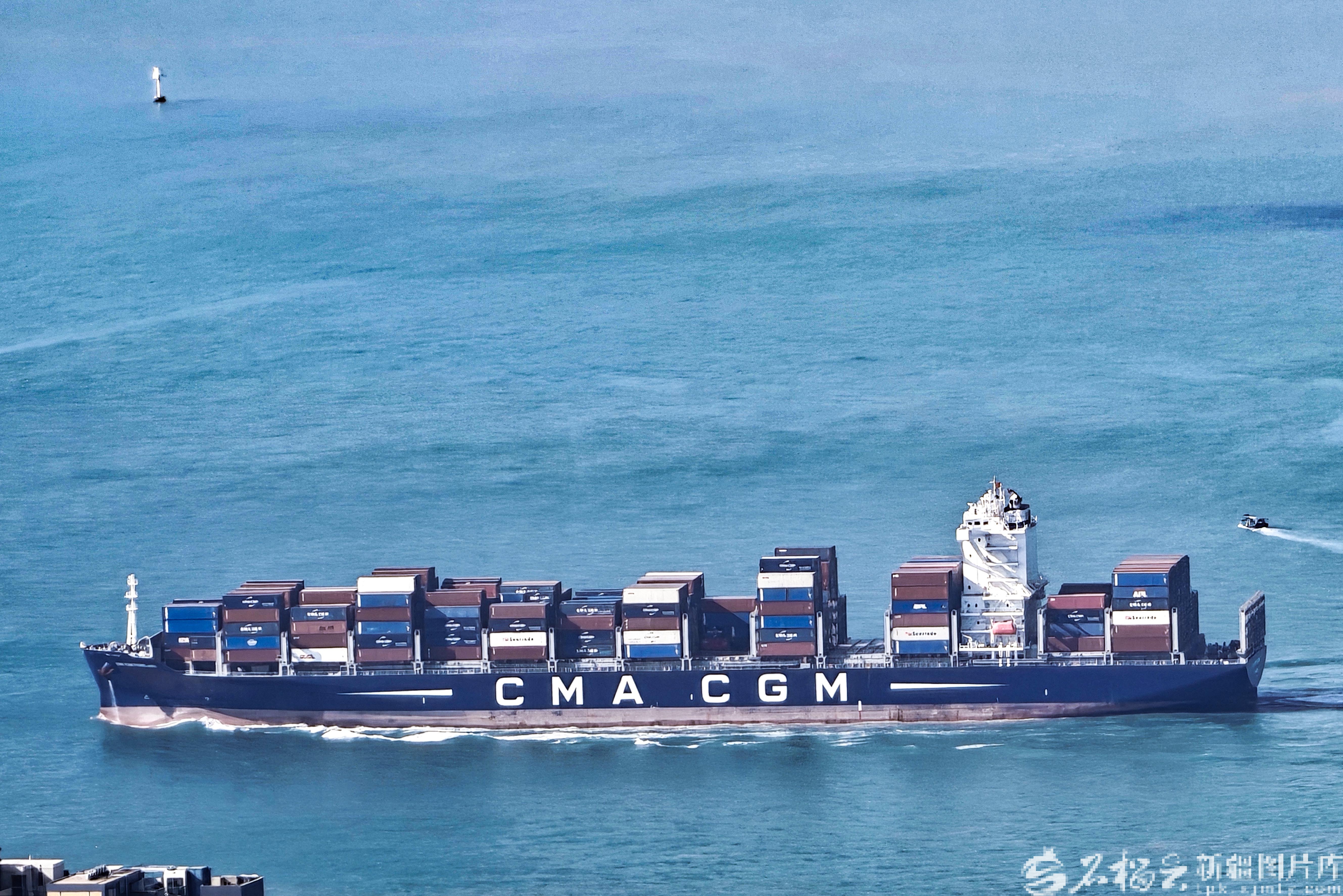 一艘货轮从香港驶向大海深处。