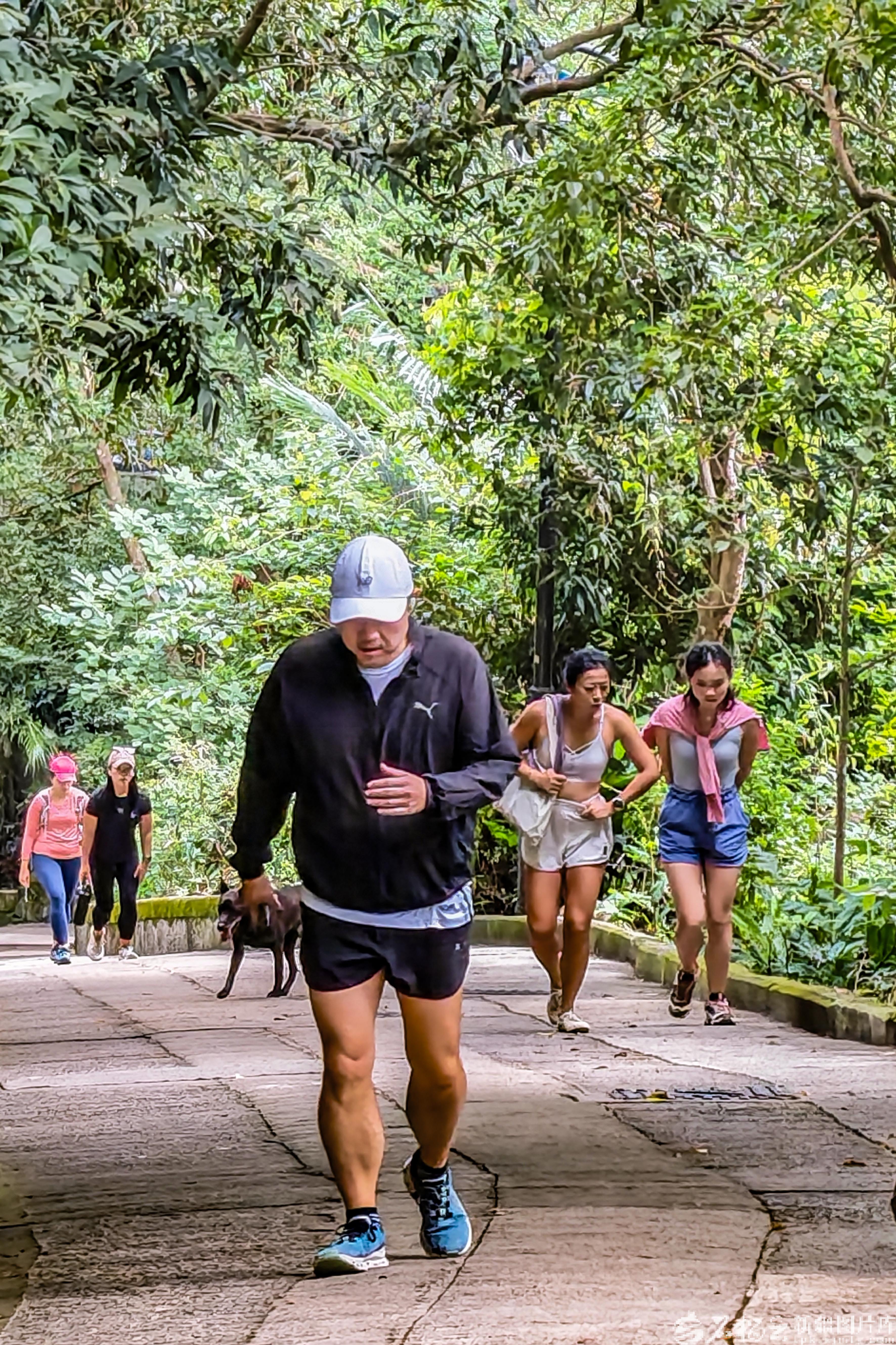 游客和市民沿着香港太平山步道爬山。
