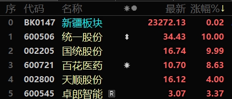 11月17日新疆板块股价涨幅排名(来源:东方财富)。