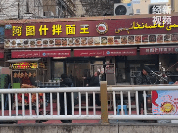 超从容!新疆大叔店门口抛盘起舞 吸引不少路人围观