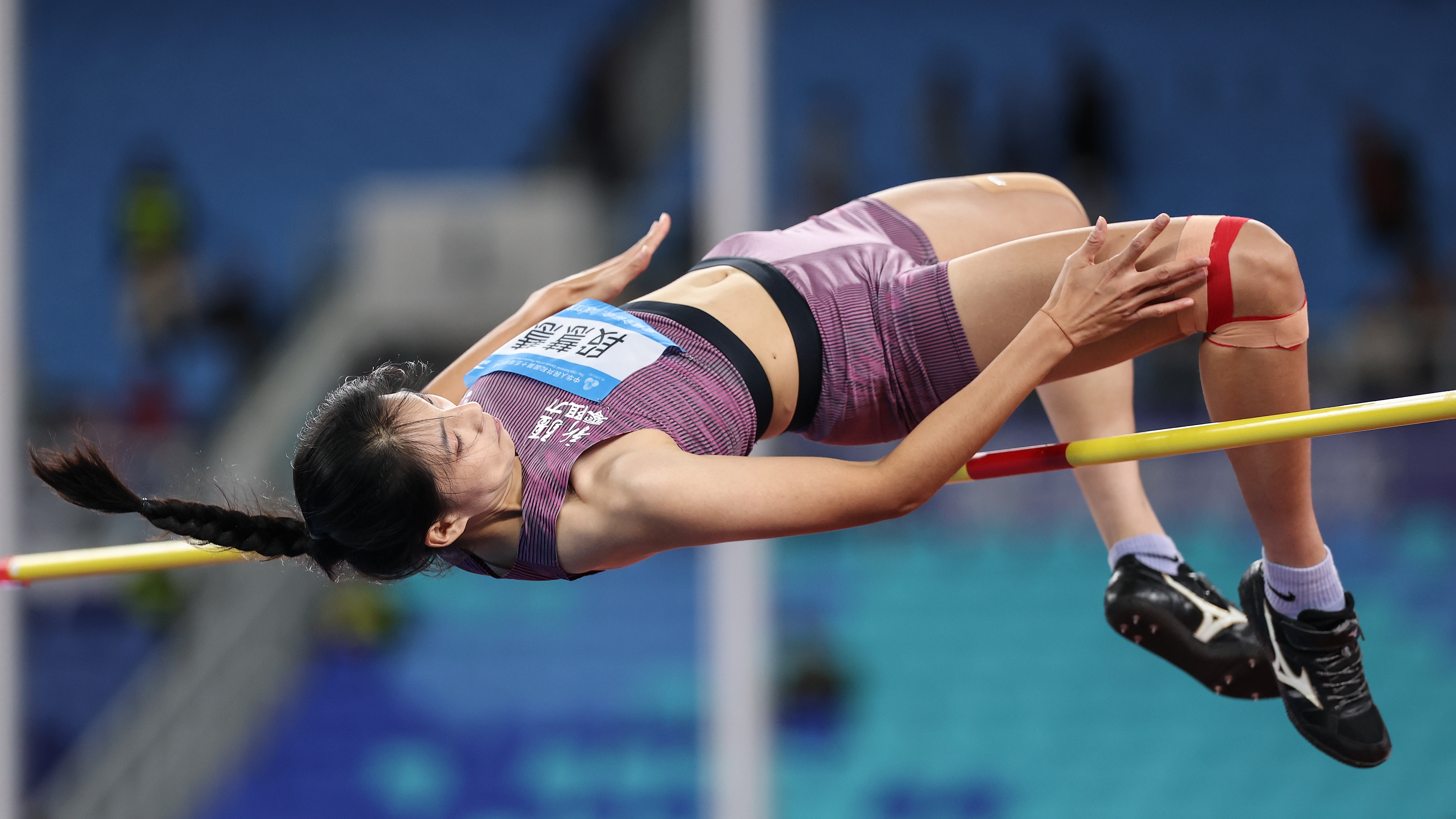 新疆跳高运动员段慧慧。第十五届全运会官网
