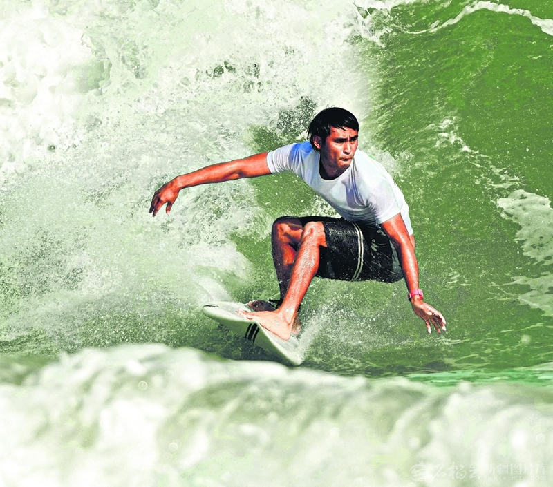 11月14日,第十五届全国运动会冲浪男子短板比赛,新疆队选手黄云翁在比赛中。