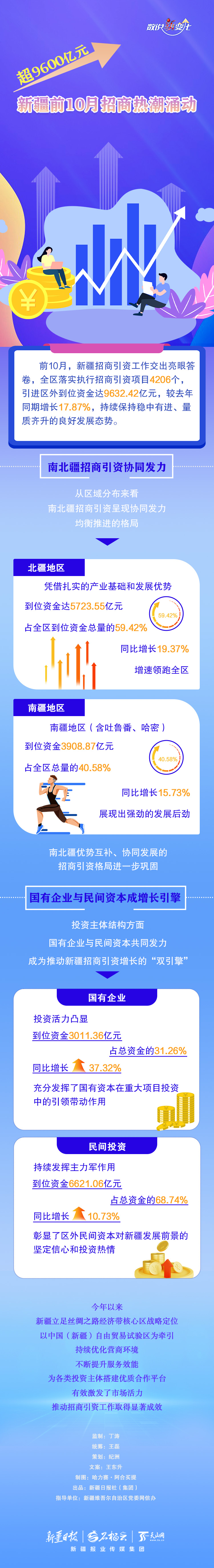 今年前10月,新疆落实执行招商引资项目4206个,引进区外到位资金达9632.42亿元,较去年同期增长17.87%。南北疆招商引资情况怎样?投资主体结构如何?今天的《数说“新”变化》一起来看看。