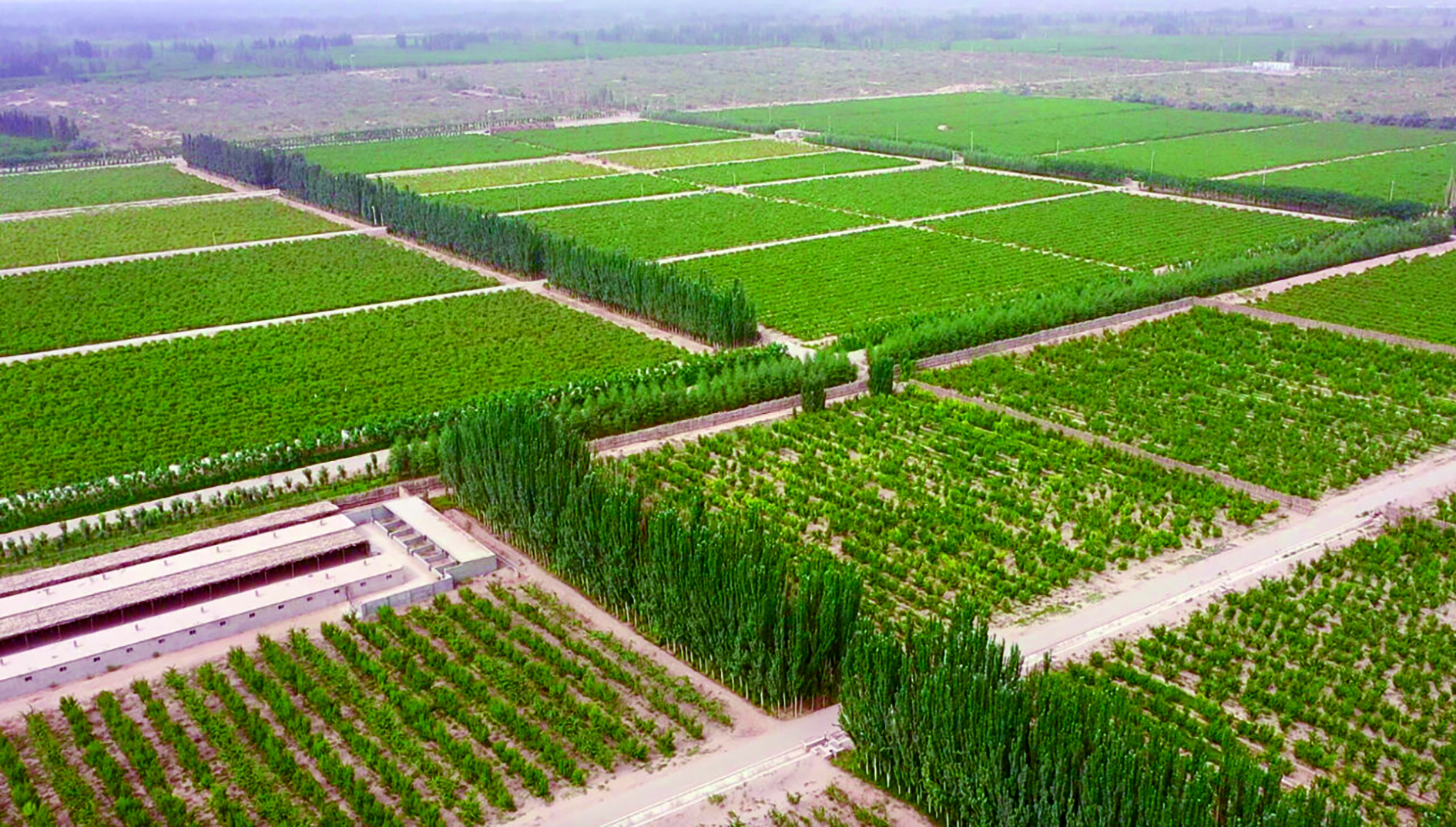 策勒县一望无际的枣田和防护林犹如一条屏障阻断风沙。约提克尔·尼加提/摄