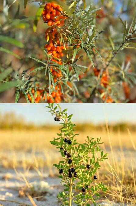 沙棘耐贫瘠、根系发达,既能防沙固土,果实还能榨成果汁、做成果酱,走俏市场;黑枸杞富含花青素,深加工产品附加值高,成为沙区群众的“致富果”,让沙漠边缘的农户吃上“生态饭”。