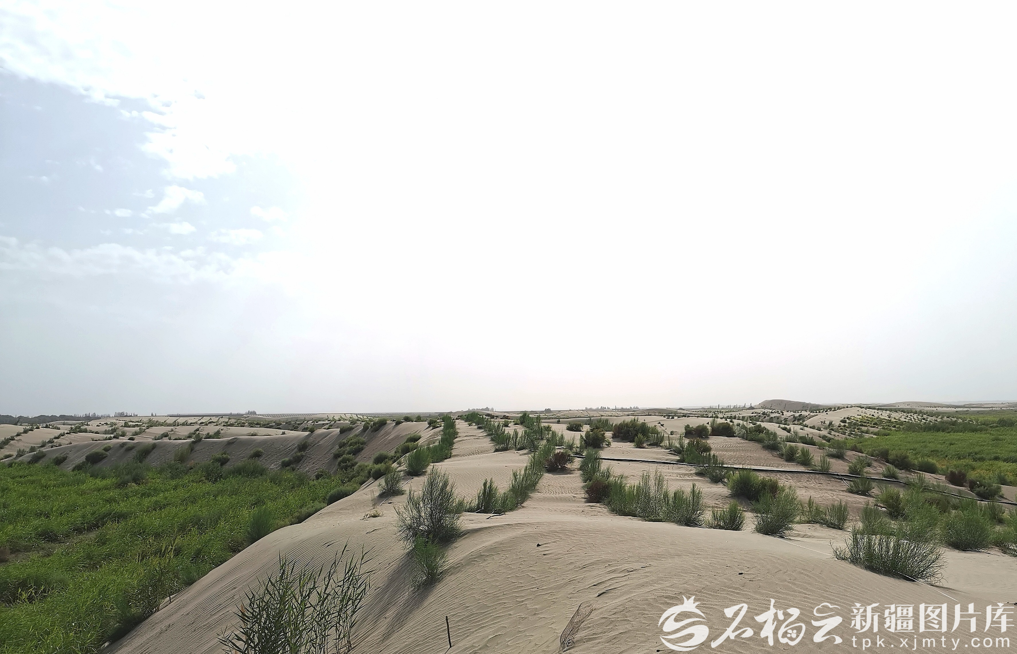 “今年春季栽植的2.5万亩梭梭树苗,如今已蹿升至1米高,形成长5公里、宽4公里的绿色屏障,让塔克拉玛干沙漠‘绿围脖’更宽更绿了。”新疆鸿泰绿疆农林开发有限公司项目负责人王志军语气中充满自豪。