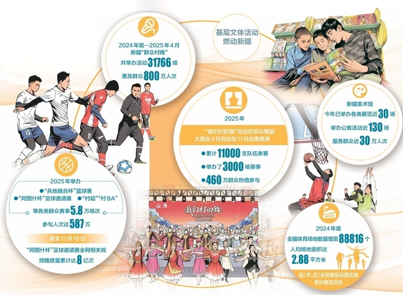 群众性文化体育活动的蓬勃生机,离不开肥沃土壤的培育。目前,我区已基本建成区、地、县、乡、村五级公共文化服务体系。从“中国新疆民间艺术季”到“春雨工程——文化和旅游志愿服务边疆行”;从“群众村晚”到“群星耀天山”品牌活动,多元平台让群众才艺有处可展、梦想有台可圆。