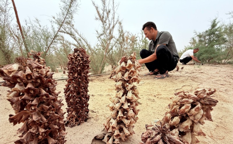 新疆各地坚持产业生态协同发展,因地制宜发展罗布麻、肉苁蓉等沙生植物产业,实现防沙治沙可持续发展。