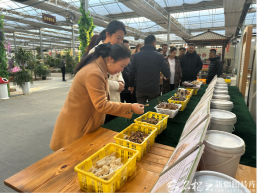 青年企业家在疏勒县“鲁疆情”食用菌生态科技示范园参观食用菌产品。马珉摄