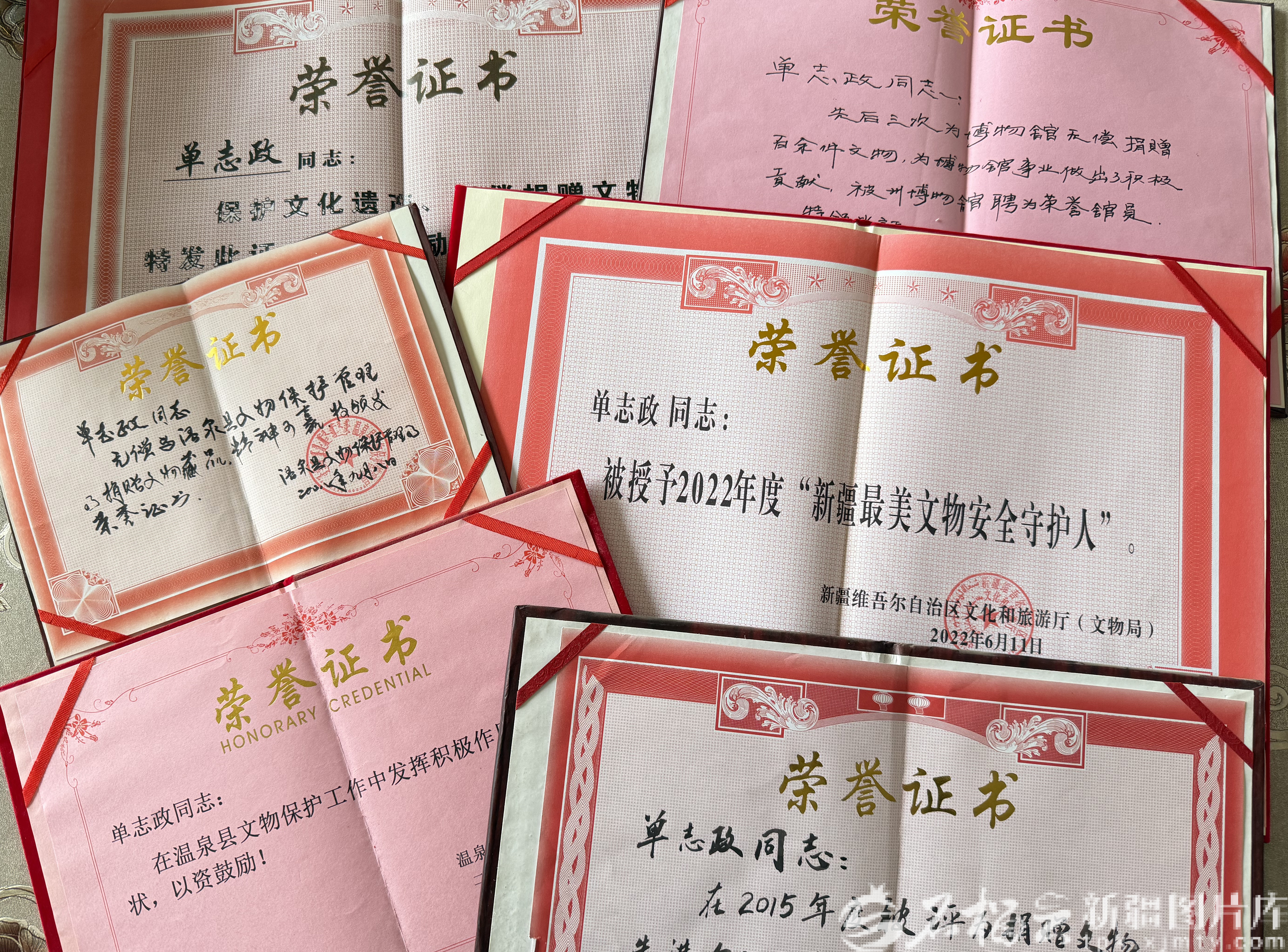 2022年6月,单志政获评当年度“新疆最美文物安全守护人”。面对荣誉,他依旧保持着农民的朴实:“文物是历史的见证,保护它们是义务。只要还能走,我就继续巡下去,让子孙后代都能看到这些宝贝。”