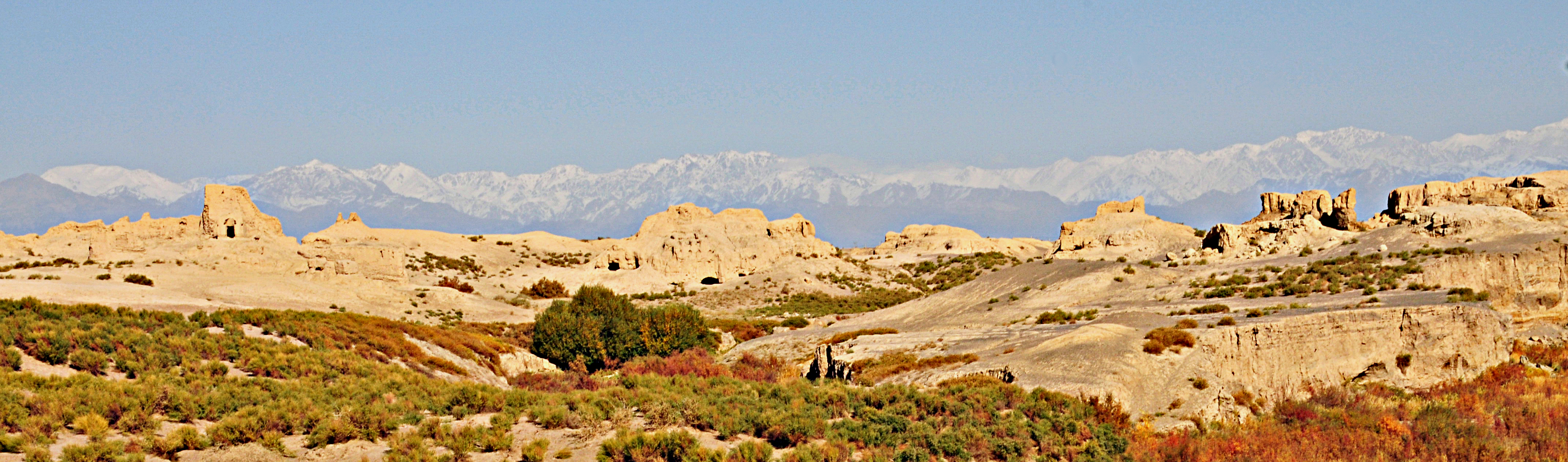 白杨沟佛寺遗址群台地上的佛寺和佛窟群。 图片来源/哈密市文博院