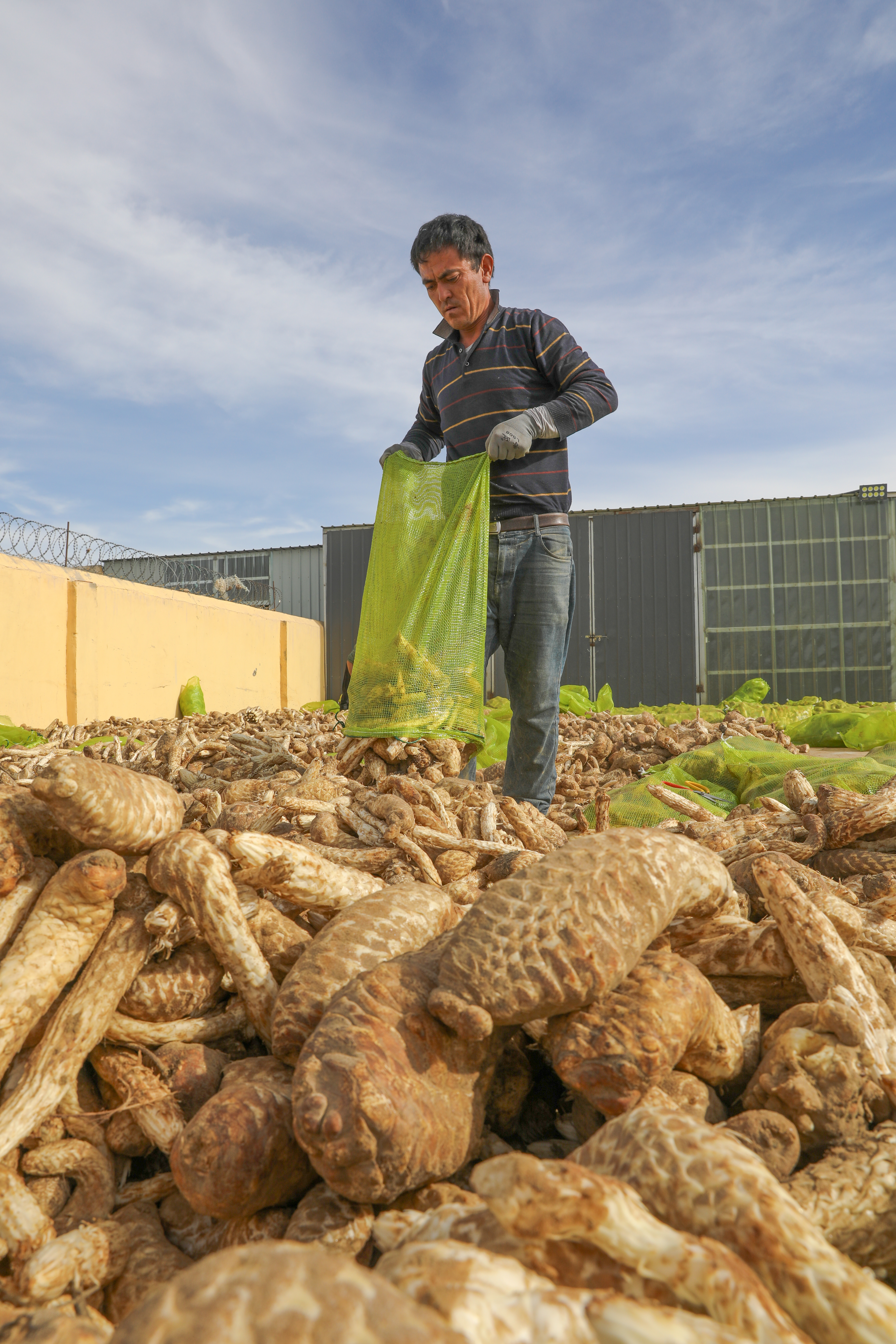 苁蓉小镇员工正在晾晒肉苁蓉。许晓龙 摄