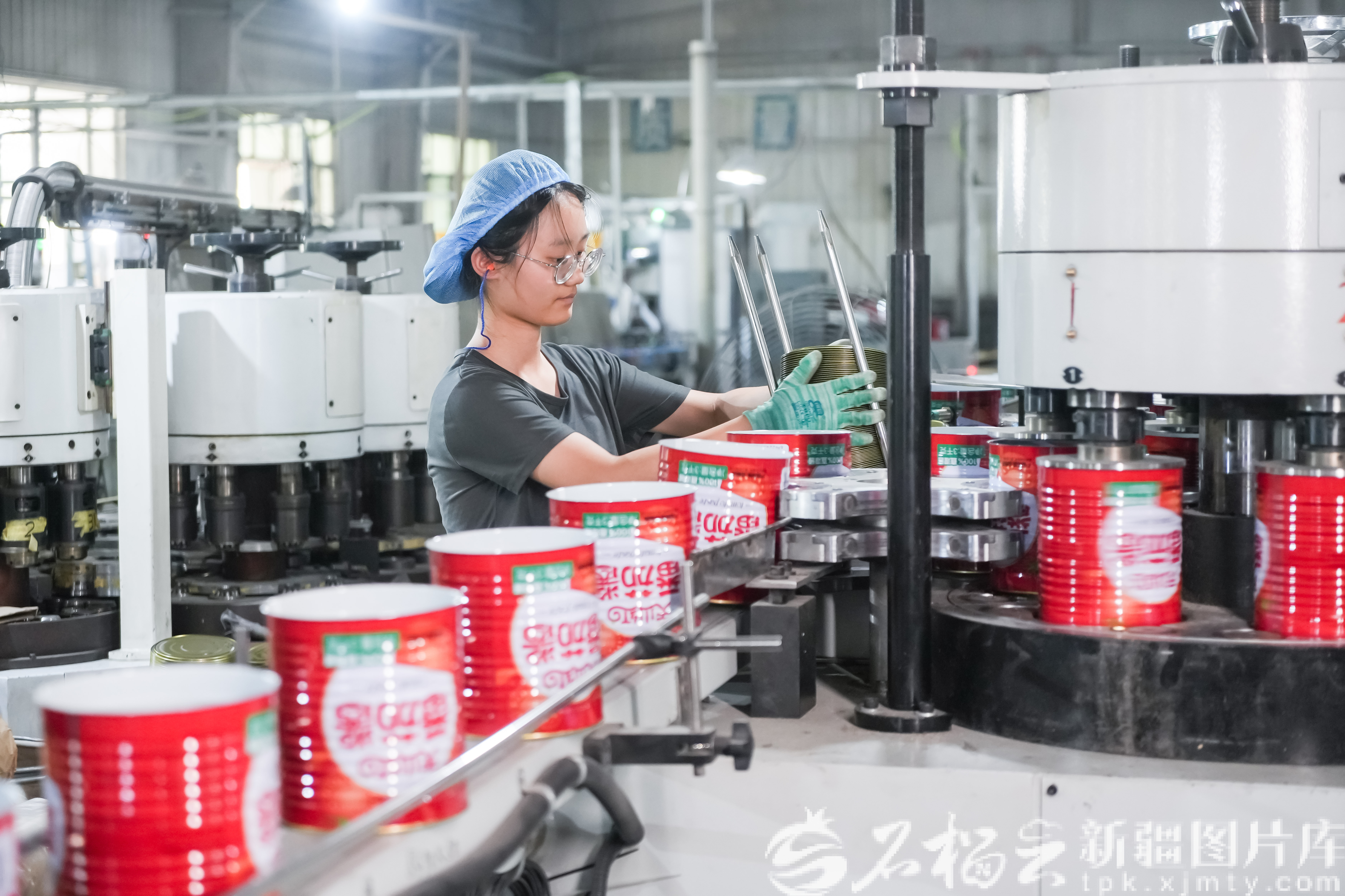 8月20日,新疆农业大学农学院学生在制罐厂制作番茄酱包装罐。图片由新疆农业大学提供