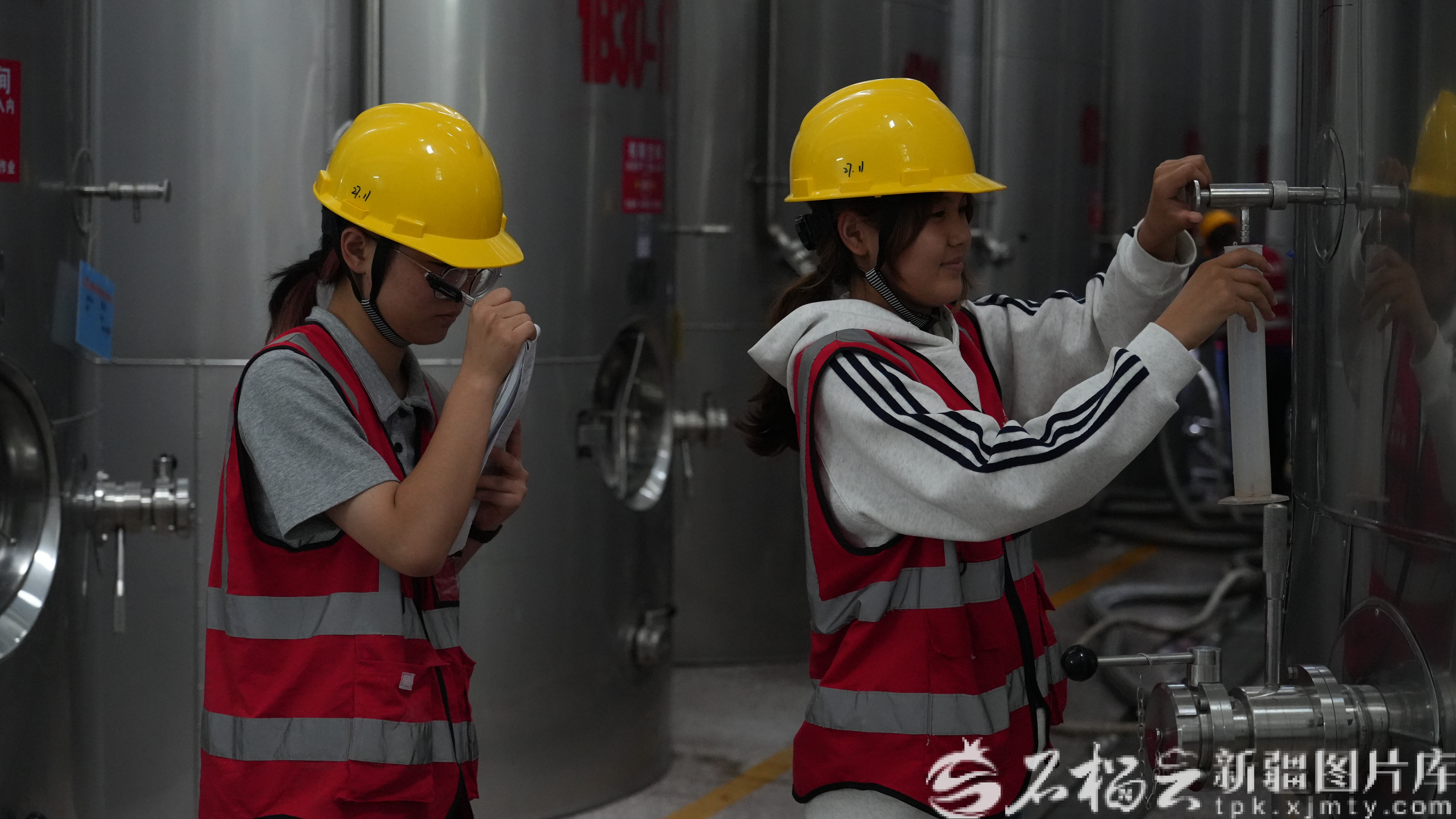 9月1日,在新疆农业大学耕读教育实践基地,该校生命科学学院、食品科学与药学学院学生正在抽检葡萄酒产品。图片由新疆农业大学提供