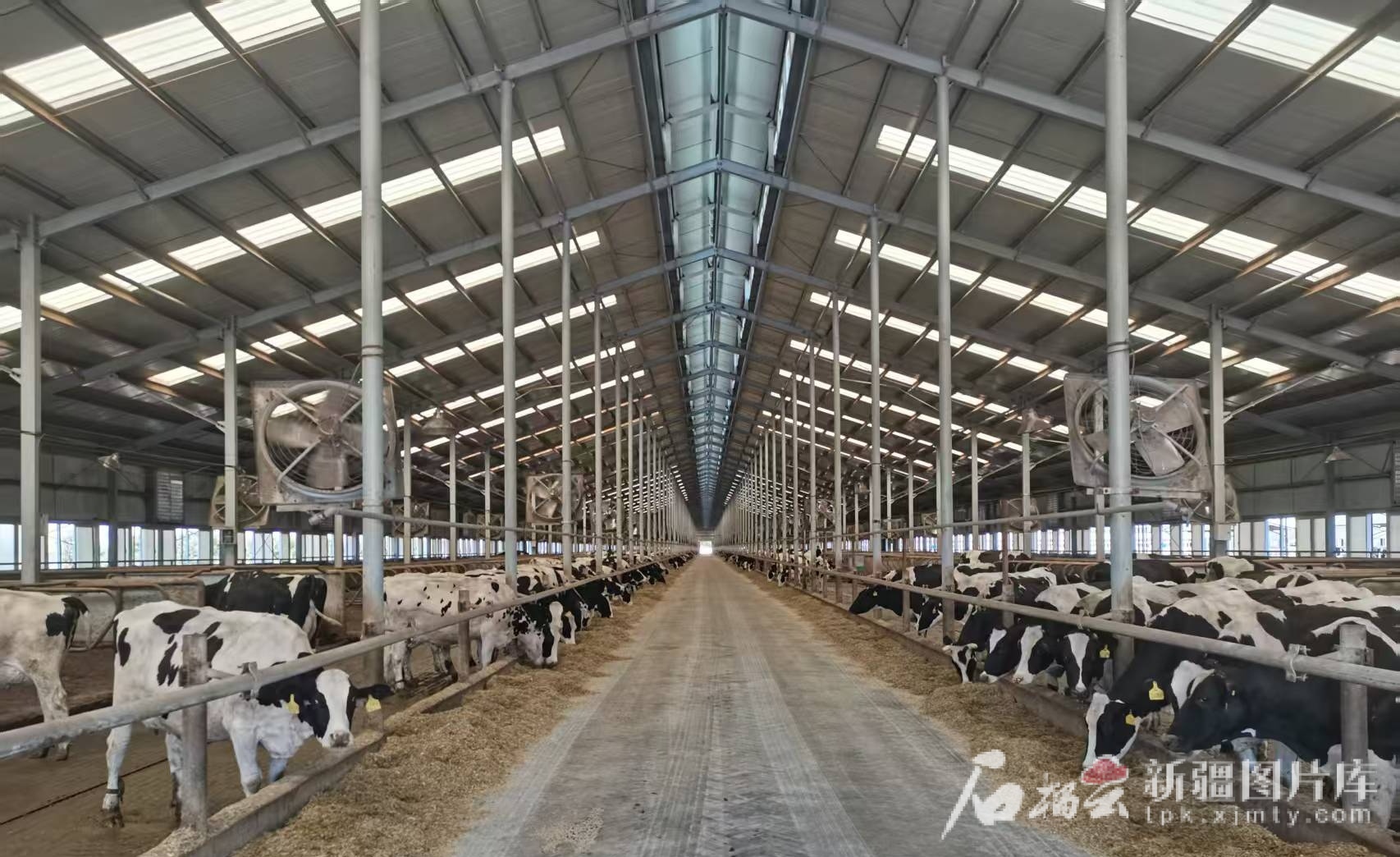 新疆呼图壁种牛场有限公司规模化养殖场奶牛采食TMR饲料。王夕虎摄