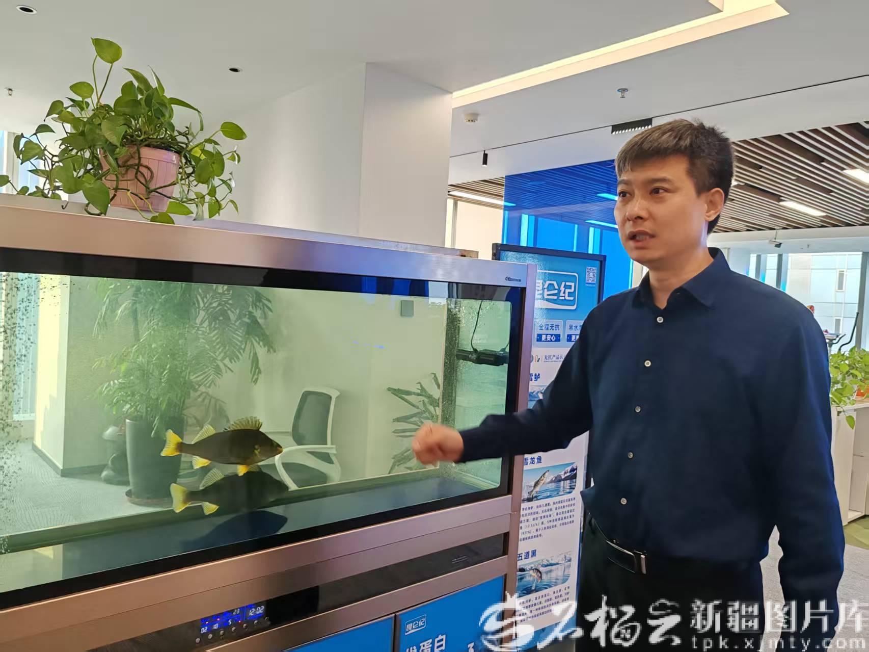 “这两条五道黑已经在这个鱼缸内生活一个多月了,个头大、姿态优美,是我们向客户推荐所辖的3大渔业基地的形象大使。”新疆浩远渔业有限公司总经理马耀辉说。