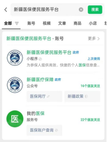 第一步:微信搜索“新疆医保便民服务平台”小程序。