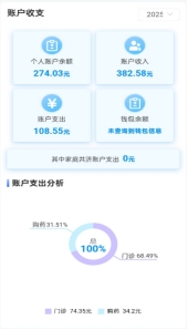 收支明细“一眼明”,每笔花费算得清:个人账户余额、年度收支、医保钱包余额等关键数据一目了然,账户资产实时掌控;门诊、住院、购药等核心环节医保消费智能分类,占比清晰可见,直观展示消费结构,帮参保人合理规划医疗支出。