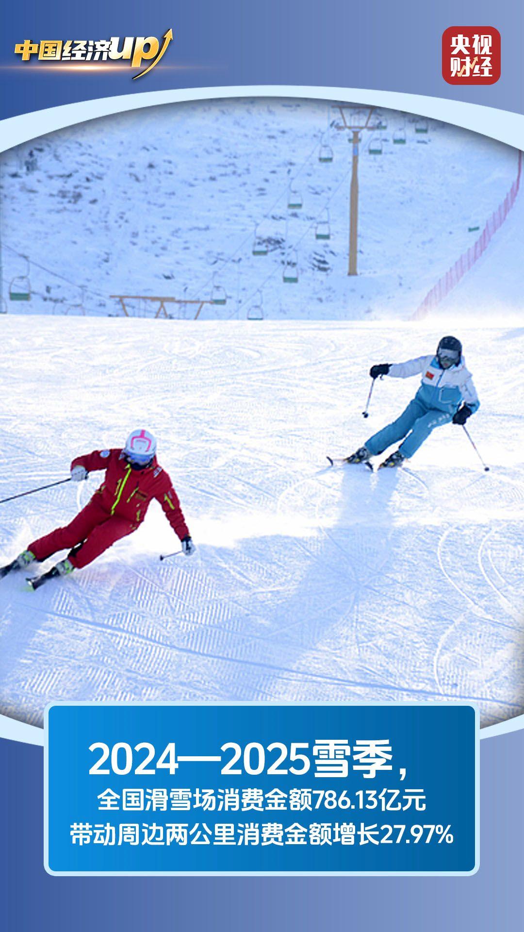 滑雪场辐射效应显著:2024—2025冰雪季,全国滑雪场消费金额达786.13亿元,滑雪场周边两公里内,消费金额同比增长27.97%,对周边零售、交通、餐饮等行业拉动作用明显。