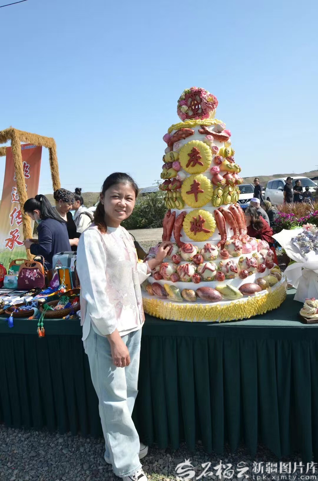 今年9月28日,乌鲁木齐米东区举办的2025年中国农民丰收节系列活动中,蒋爱华带着制作好的花饽饽参展。蒋爱华供图