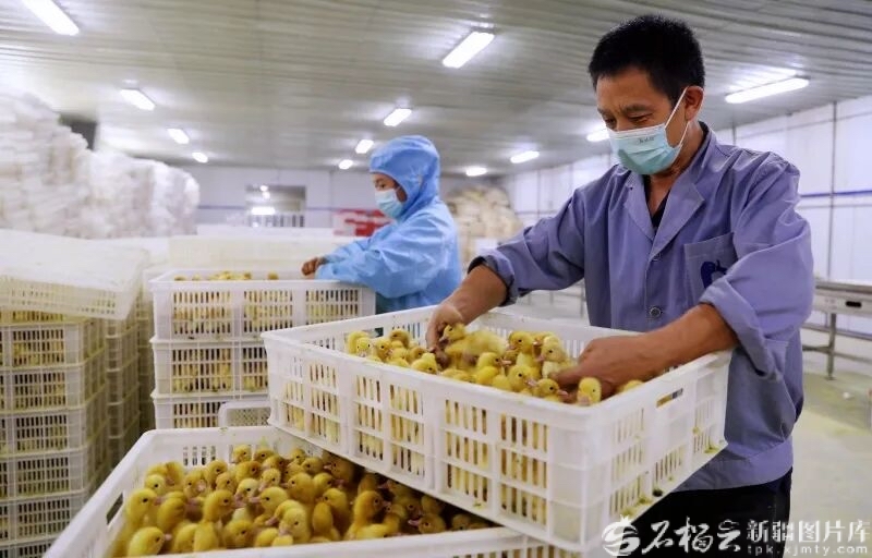 在百福升农牧发展有限公司里,工人忙着分选鸭苗。图/塔城地区融媒体中心提供